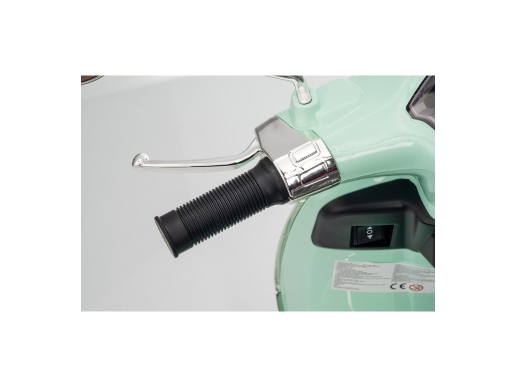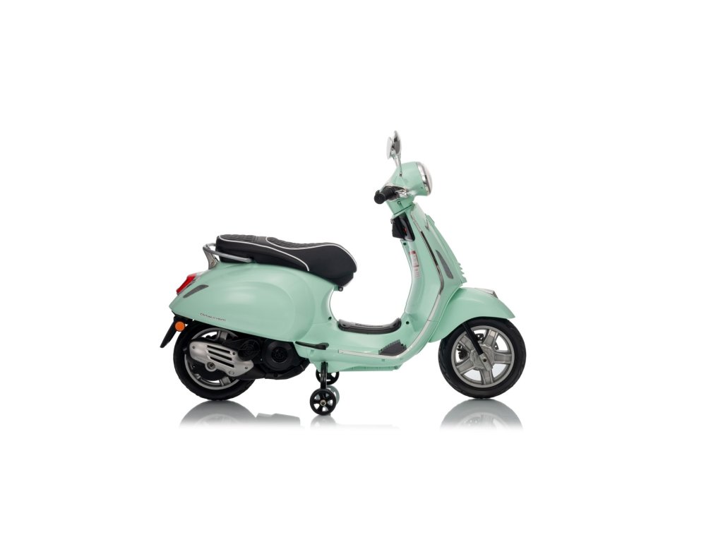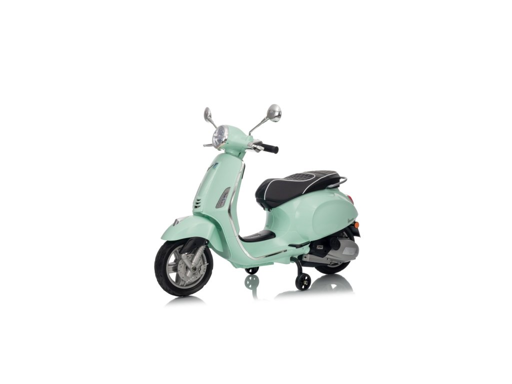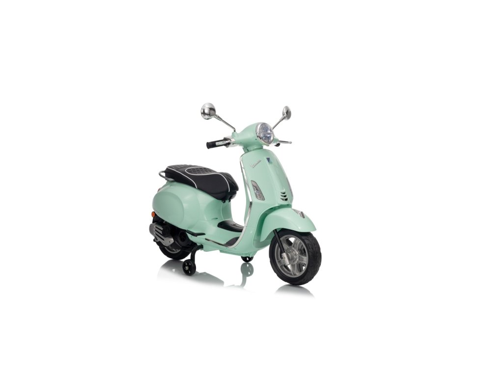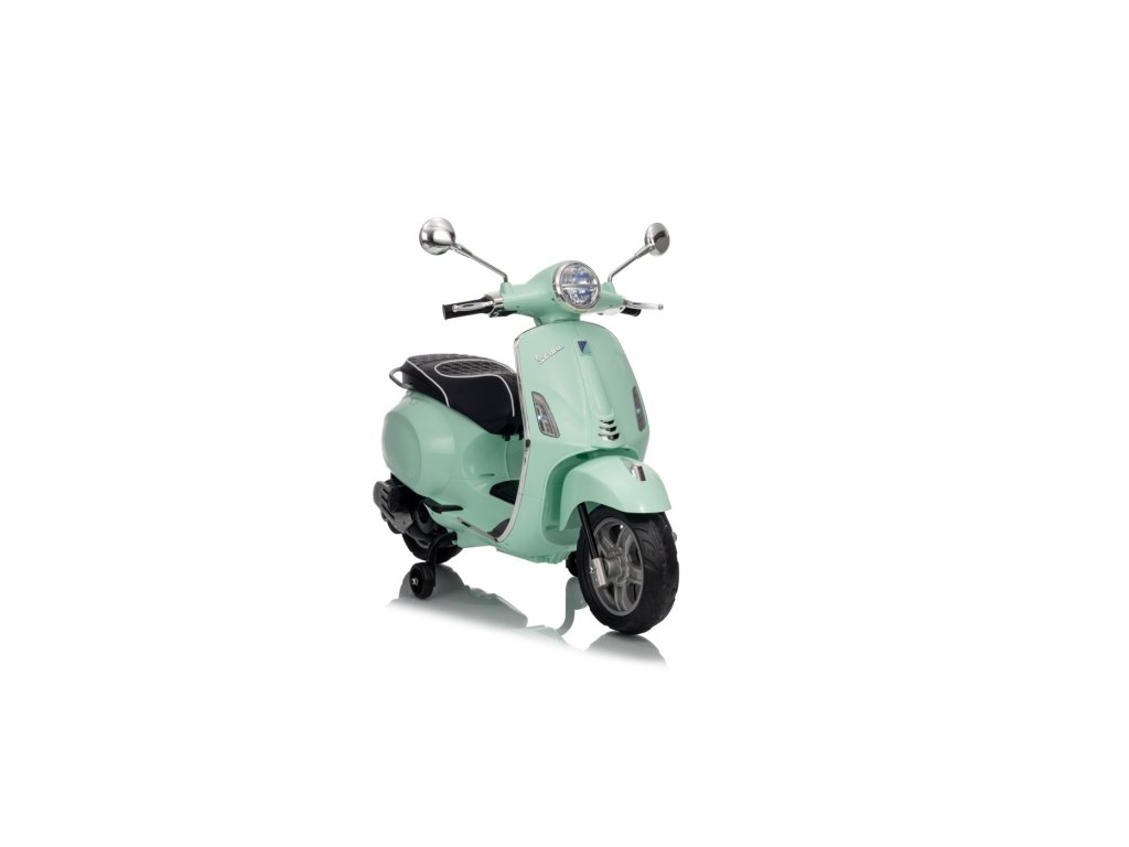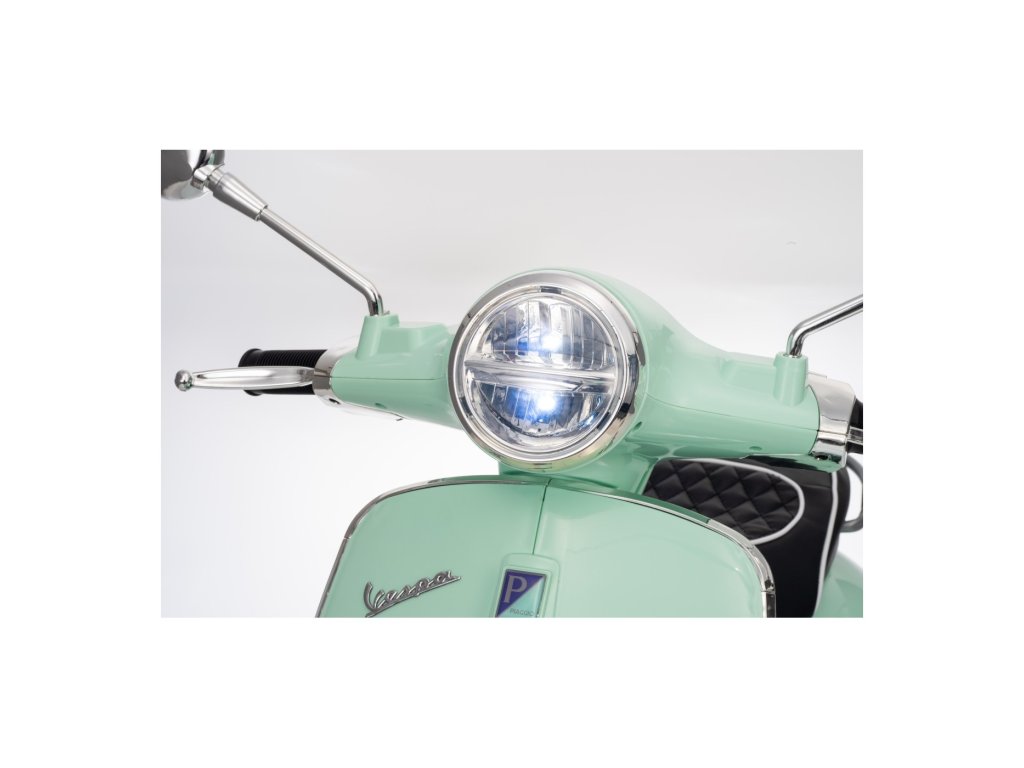 Кой не познава скутера марка Vespa? Този легендарен скутер може да се управлява и от Вашето дете, благодарение на този лицензиран модел. Скутерът има качествена седалка, покрита с мека екологична кожа, и меки EVA колела. Към всичко това красиви предни и задни LED светлини и може да възпроизвежда MP3 файлове, така че детето да може да слуша любимата си песен по време на шофиране и в същото време да усъвършенства шофьорските си умения.