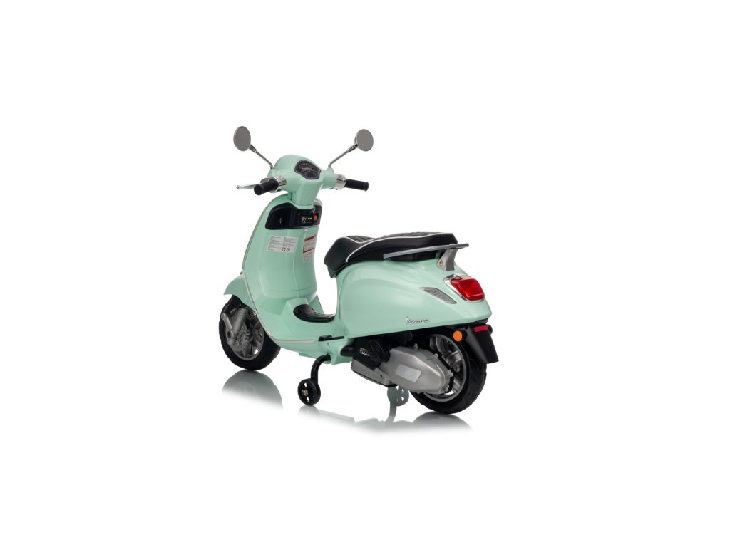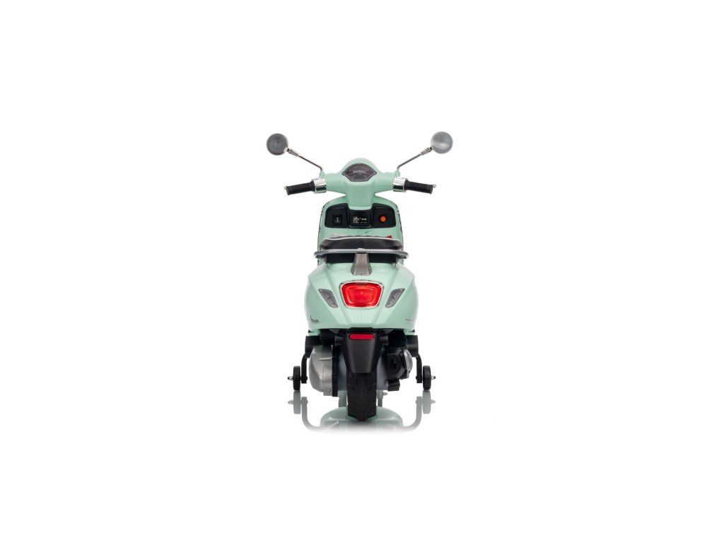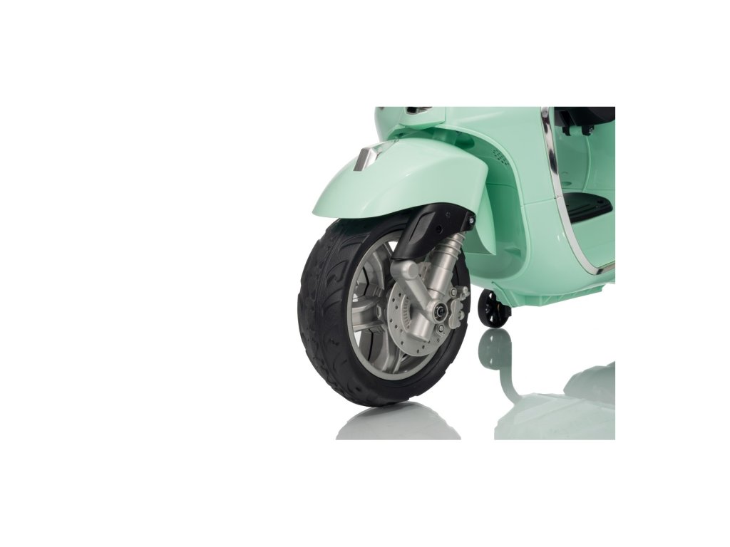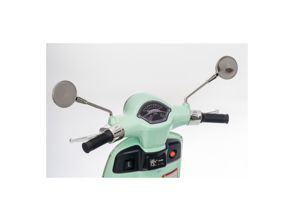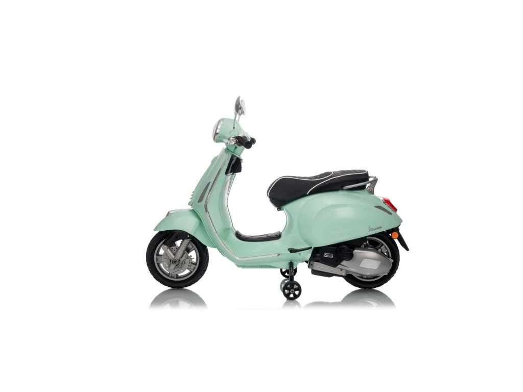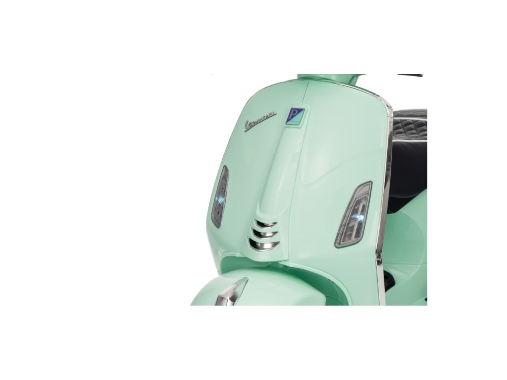Кой не познава скутера марка Vespa? Този легендарен скутер може да се управлява и от Вашето дете, благодарение на този лицензиран модел. Скутерът има качествена седалка, покрита с мека екологична кожа, и меки EVA колела. Към всичко това красиви предни и задни LED светлини и може да възпроизвежда MP3 файлове, така че детето да може да слуша любимата си песен по време на шофиране и в същото време да усъвършенства шофьорските си умения.