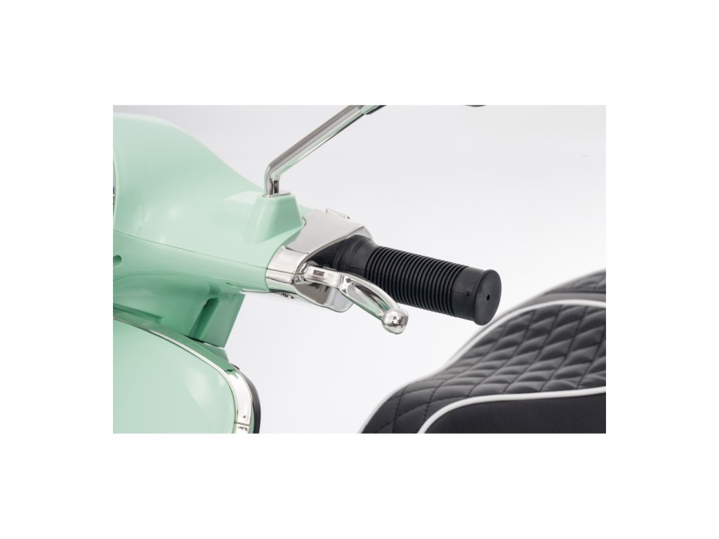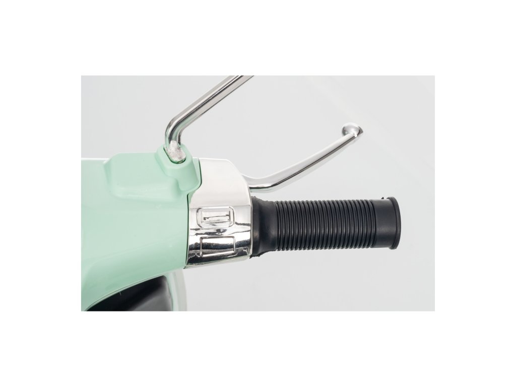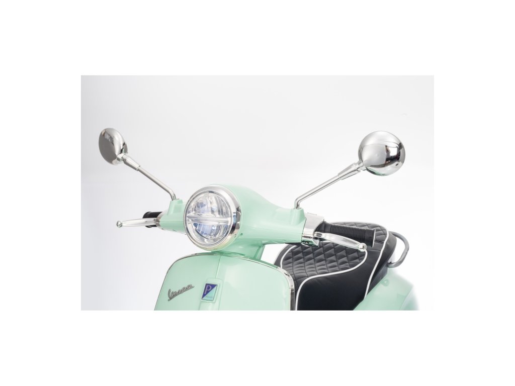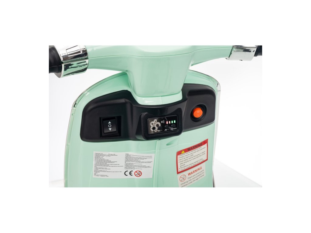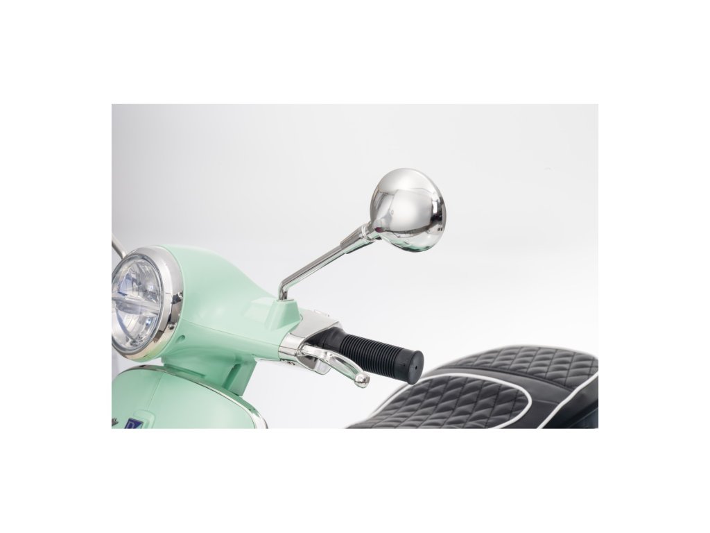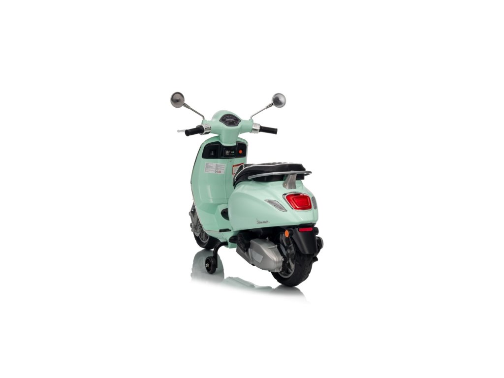 Кой не познава скутера марка Vespa? Този легендарен скутер може да се управлява и от Вашето дете, благодарение на този лицензиран модел. Скутерът има качествена седалка, покрита с мека екологична кожа, и меки EVA колела. Към всичко това красиви предни и задни LED светлини и може да възпроизвежда MP3 файлове, така че детето да може да слуша любимата си песен по време на шофиране и в същото време да усъвършенства шофьорските си умения.