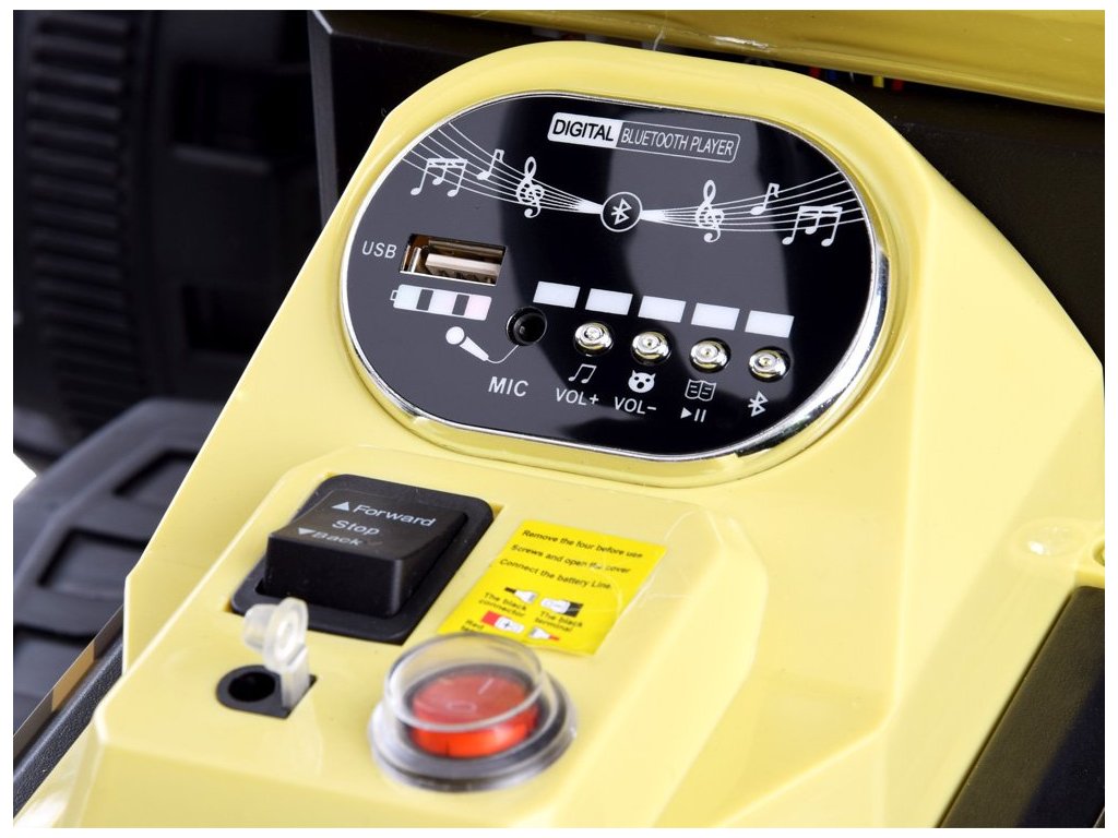 Гумите на трактора абсорбират вибрациите върху твърди и неравни повърхности. Тракторът има автоматична спирачка при отпускане на крака от педала на газта. Скоростта на превозното средство се управлява с дистанционно управление 2,4 GHz.