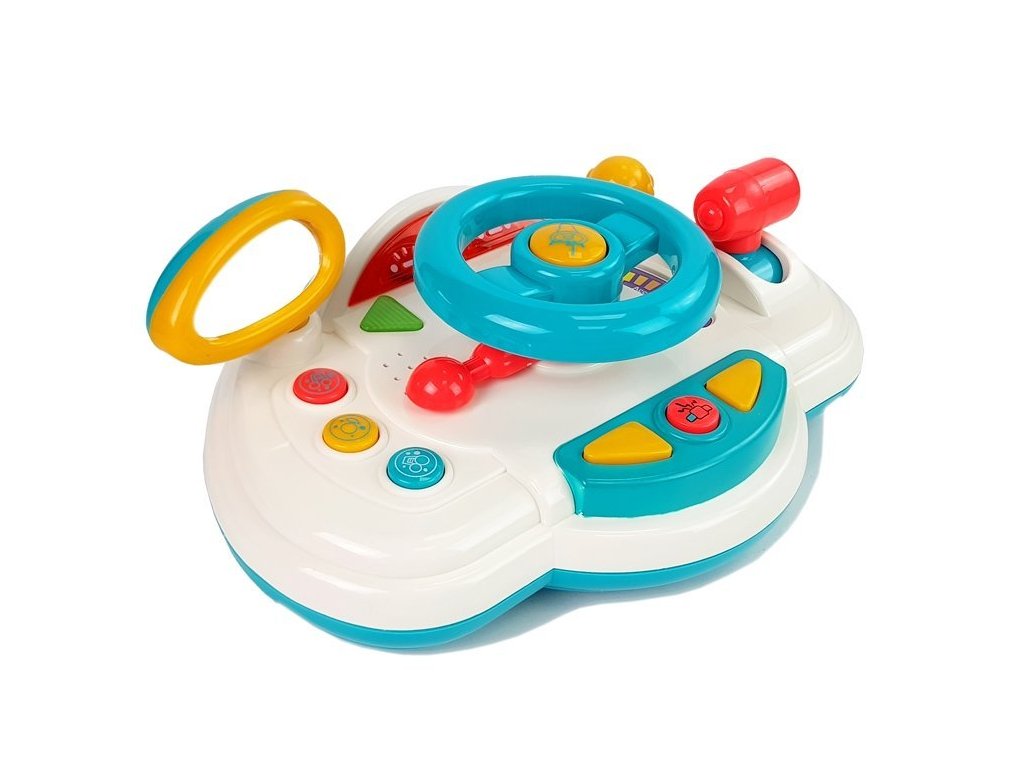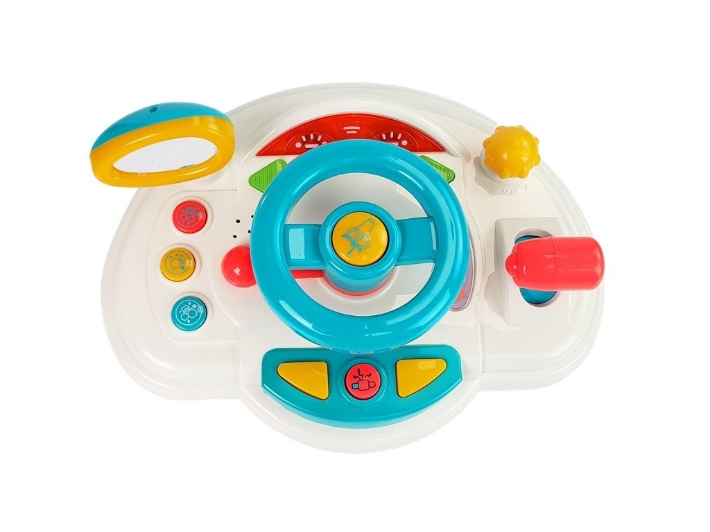 Детски интерактивен волан бял за най-малките развива у децата ръчните и моторни умения. Воланът издава различни звуци, мелодии и произнася думи на английски език.