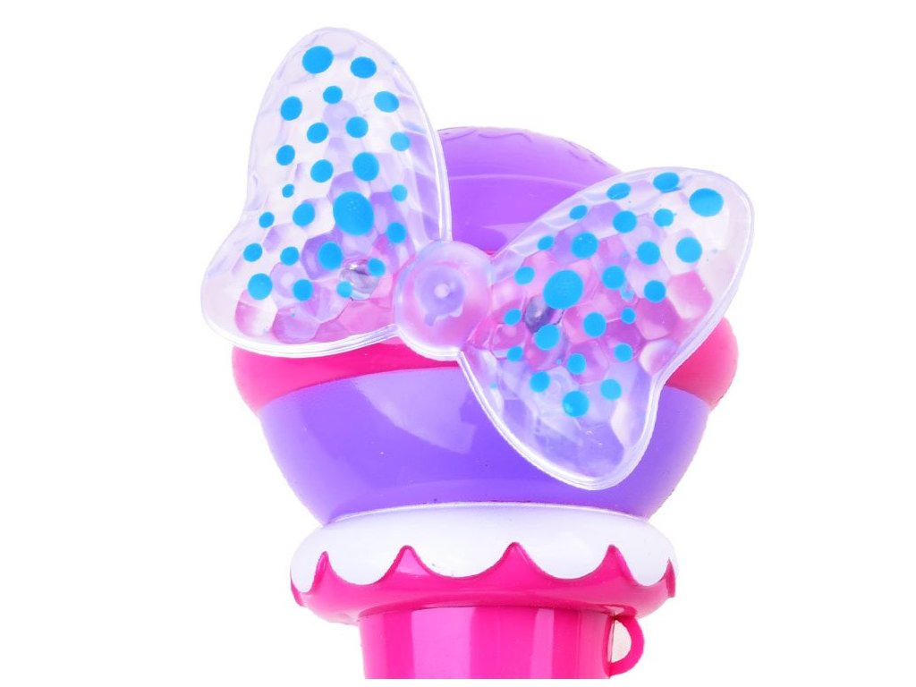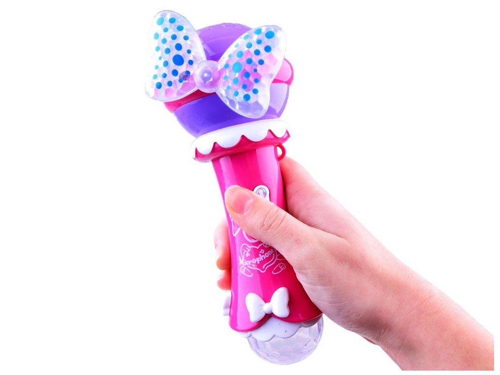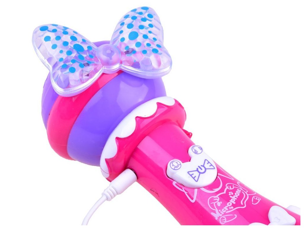 Детски караоке микрофон розов е лесен за хващане в ръка, което позволява на децата да се движат свободно, докато пеят. Децата могат да изберат мелодия и глас, който им е най-приятен. Дизайнът на микрофона е допълнен със светлинни ефекти, които допълнително украсяват техните музикални изпълнения.