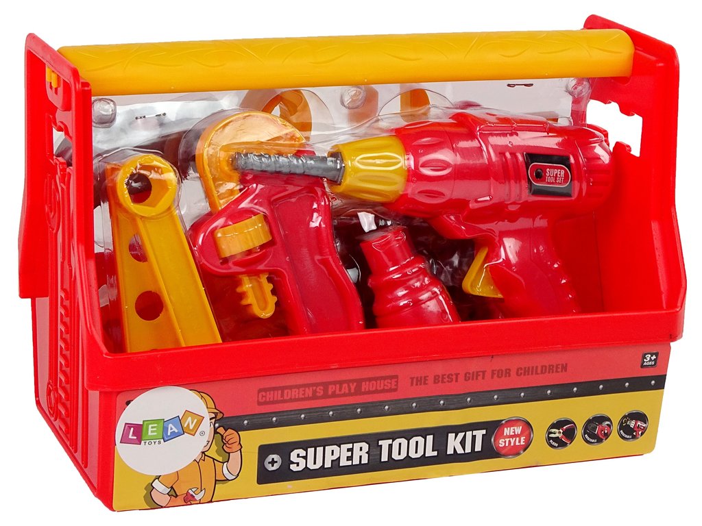 Детски комплект инструменти червен е подходящ за деца над 3 години. Играта развива логическото мислене, стимулира креативността и подпомага координацията ръка-окото.