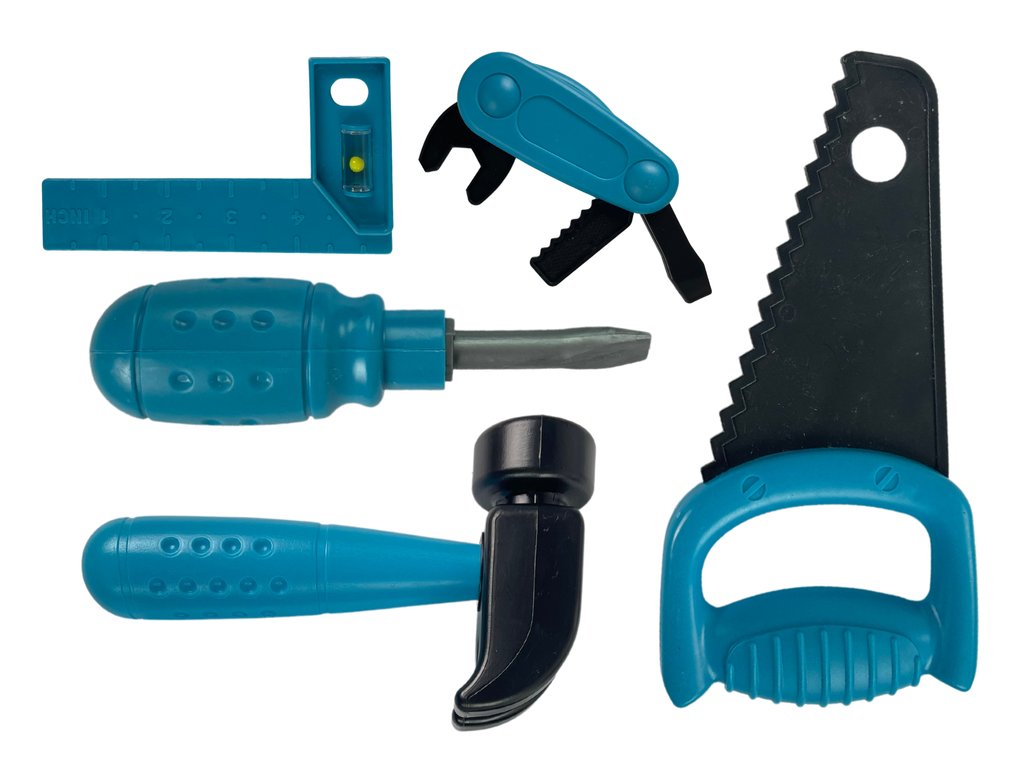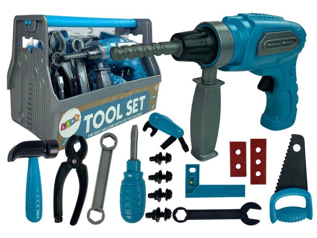 Детски комплект инструменти със свредло синьо предлага най-необходимите инструменти за изпълнение на прости домашни задачи. Свредлото е проектирано специално за малки ръце, което го прави лесно за държане и използване при различни дейности. Ножовката позволява лесно рязане.