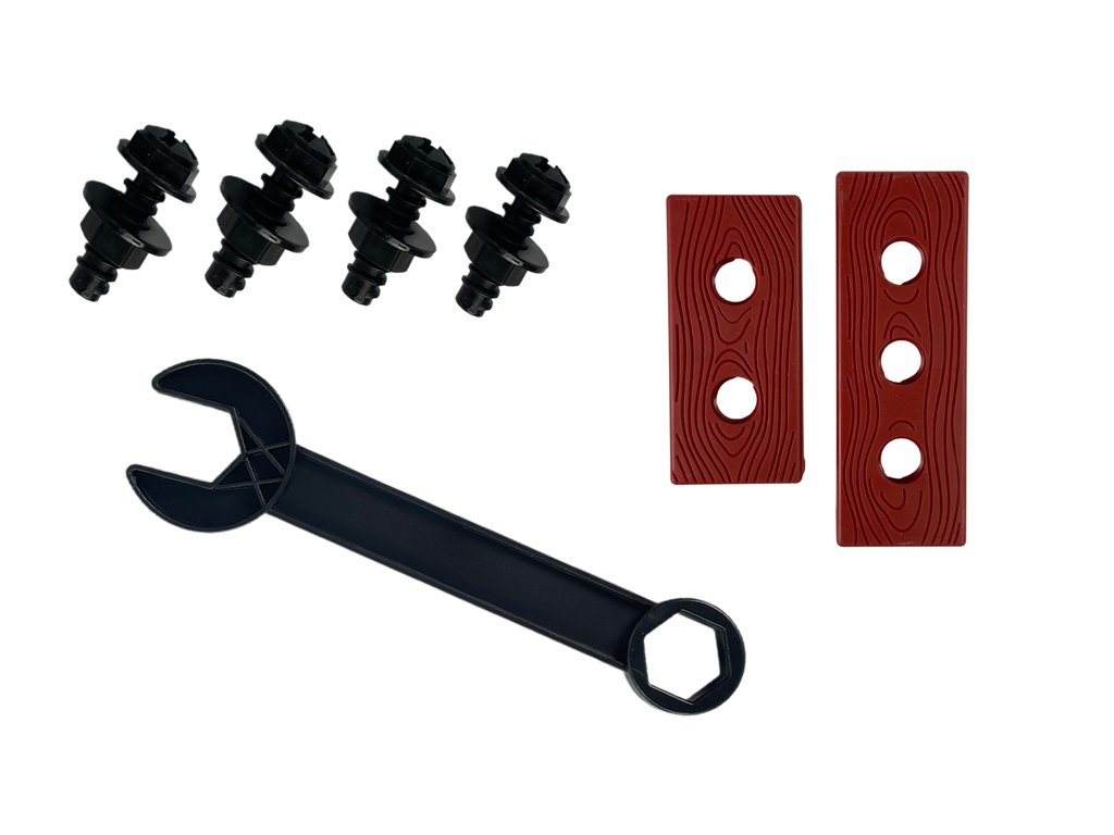 Всички инструменти са изработени и обработени изцяло от пластмаса. Синьо-черният цвят е видим от далеч, за да не се губят инструментите. Целият комплект може да се съхранява удобно в предоставения калъф.