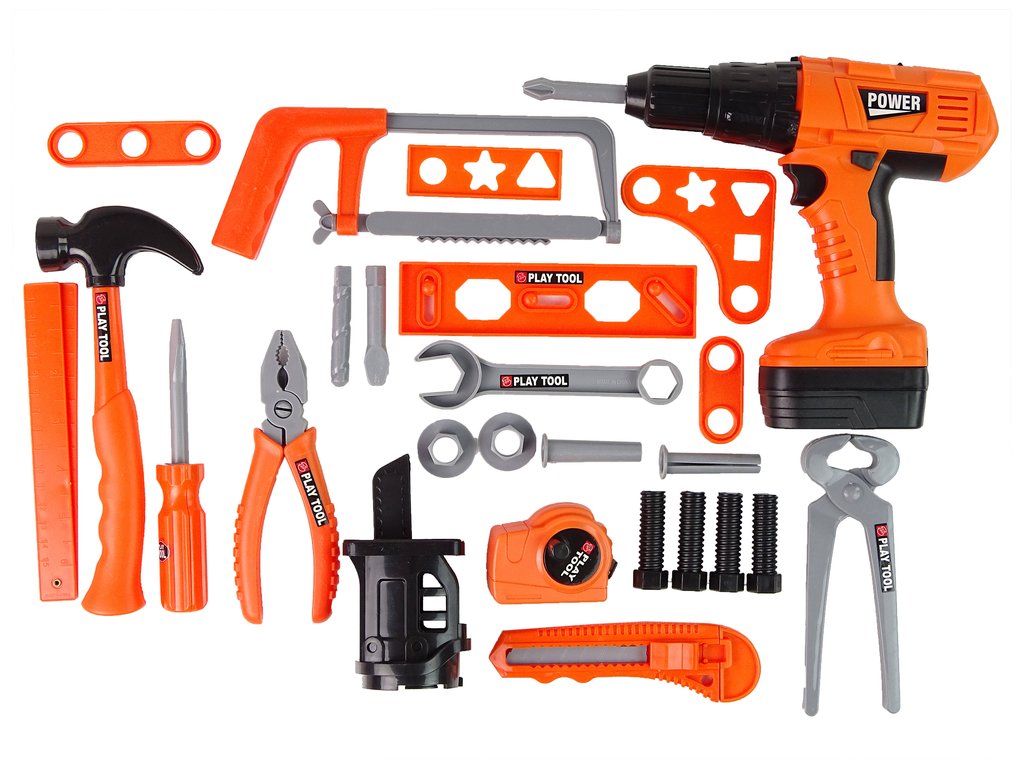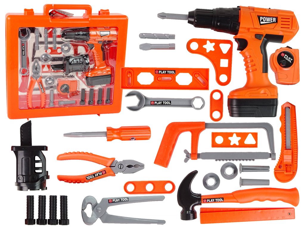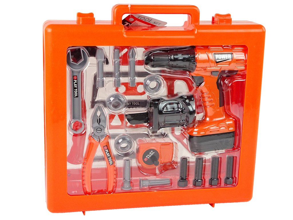 Детски комплект инструменти в куфарче оранжево е подходящ за деца над 3 години. Играчката има положително въздействие върху развитието на логическото мислене, стимулира креативността и подпомага координацията между очите и ръцете.