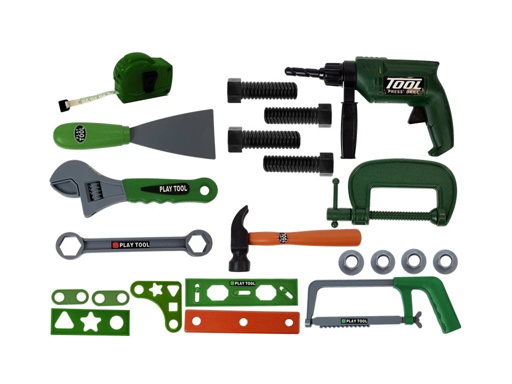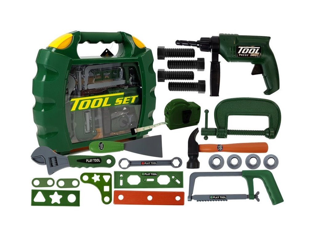 Детски комплект инструменти в куфарче за всички малки майстори. Всички елементи могат да се съхраняват в куфарчето и лесно да се пренасят безопасно.