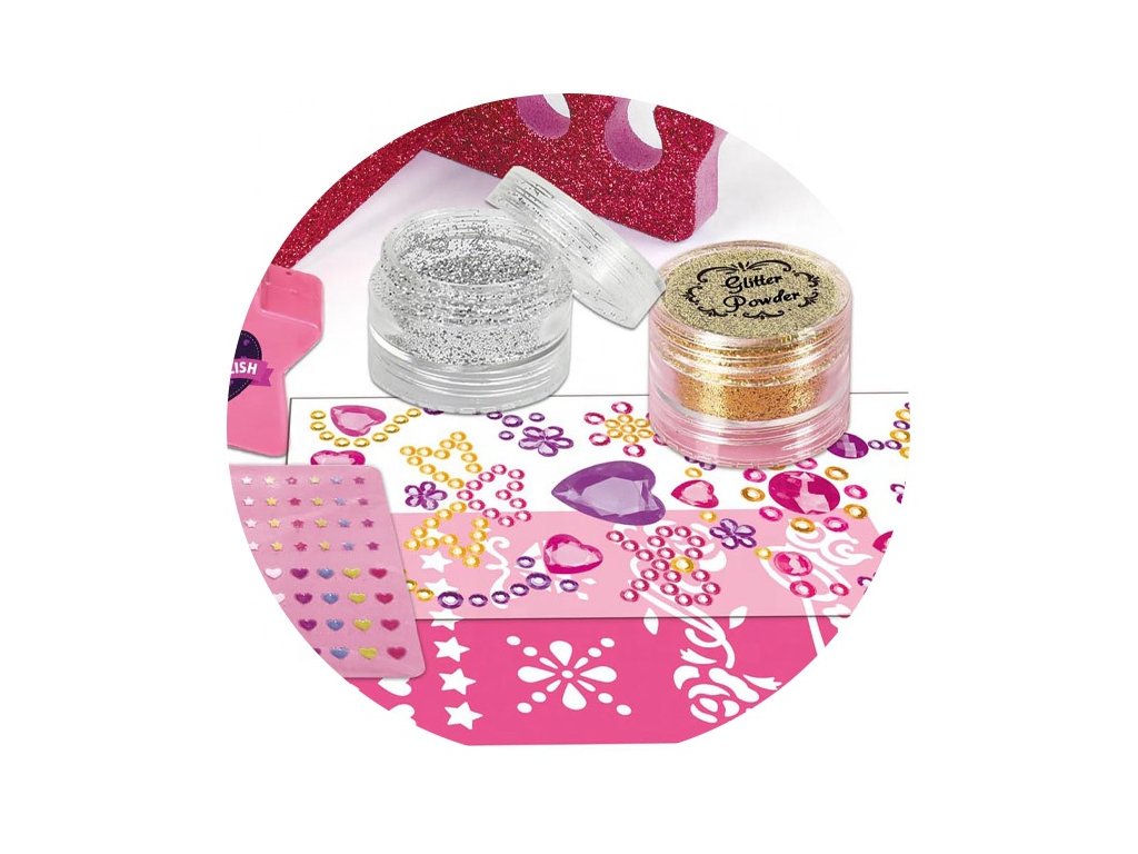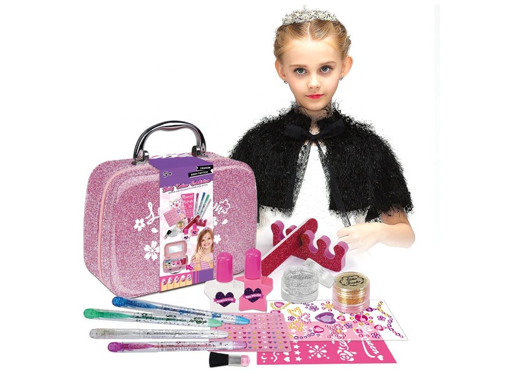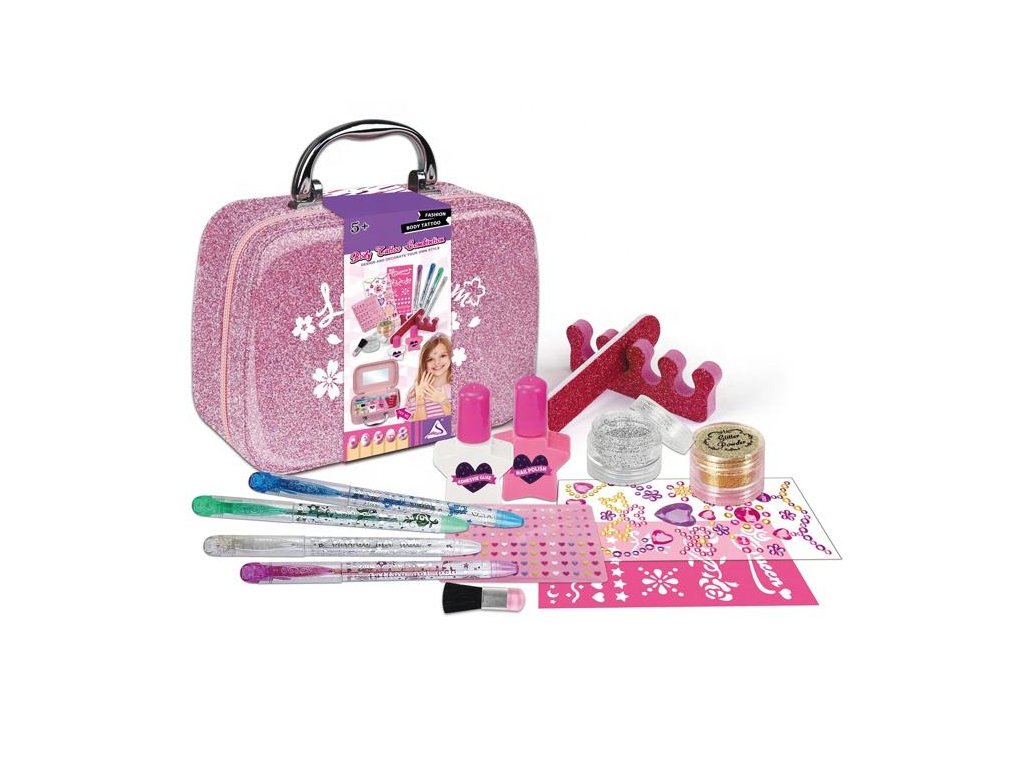 Детски комплект козметика в розов куфар е перфектният подарък за малки принцеси, които искат да се чувстват като големи момичета. Този комплект съдържа всичко необходимо за създаване на красив грим и дизайн на ноктите. В куфарчето ще откриете различни видове лакове за нокти и аксесоари за маникюр. Всички продукти са безопасни за деца и лесни за почистване.