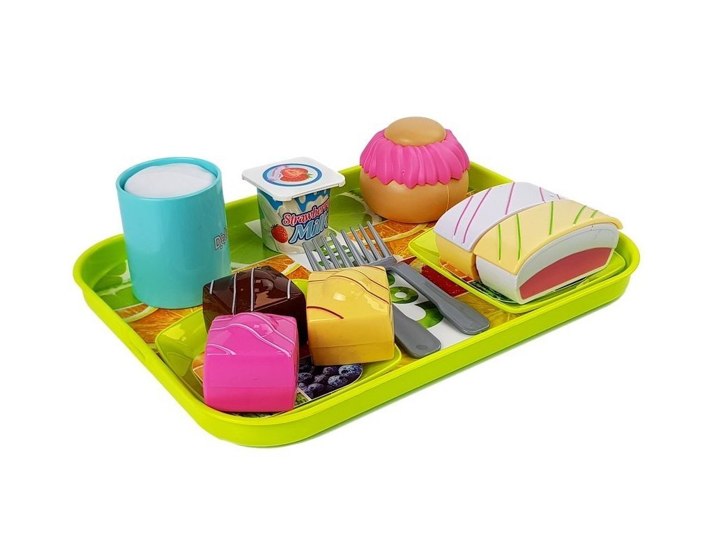 Детски комплект със сладкиши съдържа всичко необходимо на детето, за да утоли своя глад. Вероятно при вида на тези вкусотии и вие ще се изкушите. Детски комплект със сладкиши за детска кухня включва много полезни аксесоари за приготвяне на вкусен десерт от малкия сладкар. В чашката има детайл, който имитира вид на бял шоколад вътре.