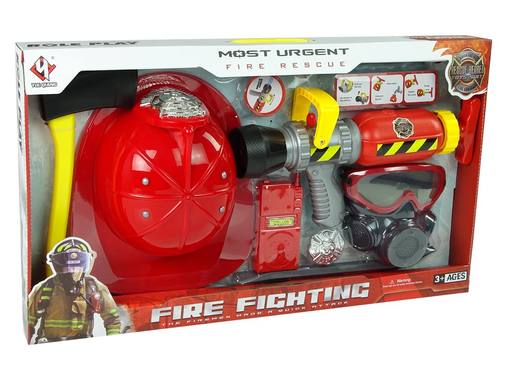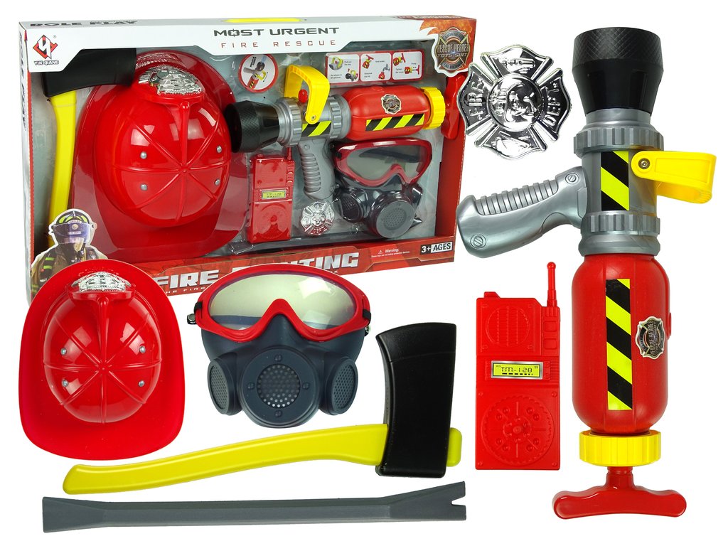 Детски комплект за малки пожарникари червен е страхотен подарък за всяко момче. Големият комплект с аксесоари ще спечели сърцето дори на най-малкия пожарникар. Комплектът е изработен от висококачествени сертифицирани материали. Елементите са прецизно пресъздадени, подражавайки на истинското пожарникарско оборудване.