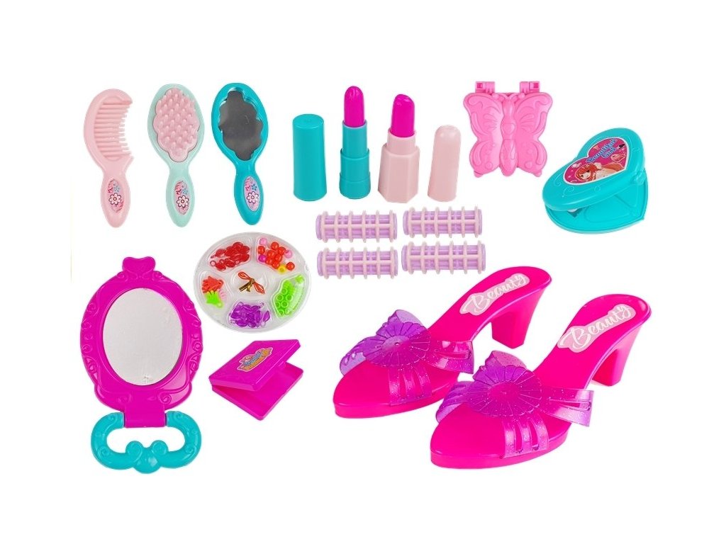 Всяка малка момиченце обича тайничко да се облича и да имитира мама си. Детски козметичен комплект с токчета в куфарче е създаден специално за малки момиченца, затова е изцяло в розово с пастелни детайли.