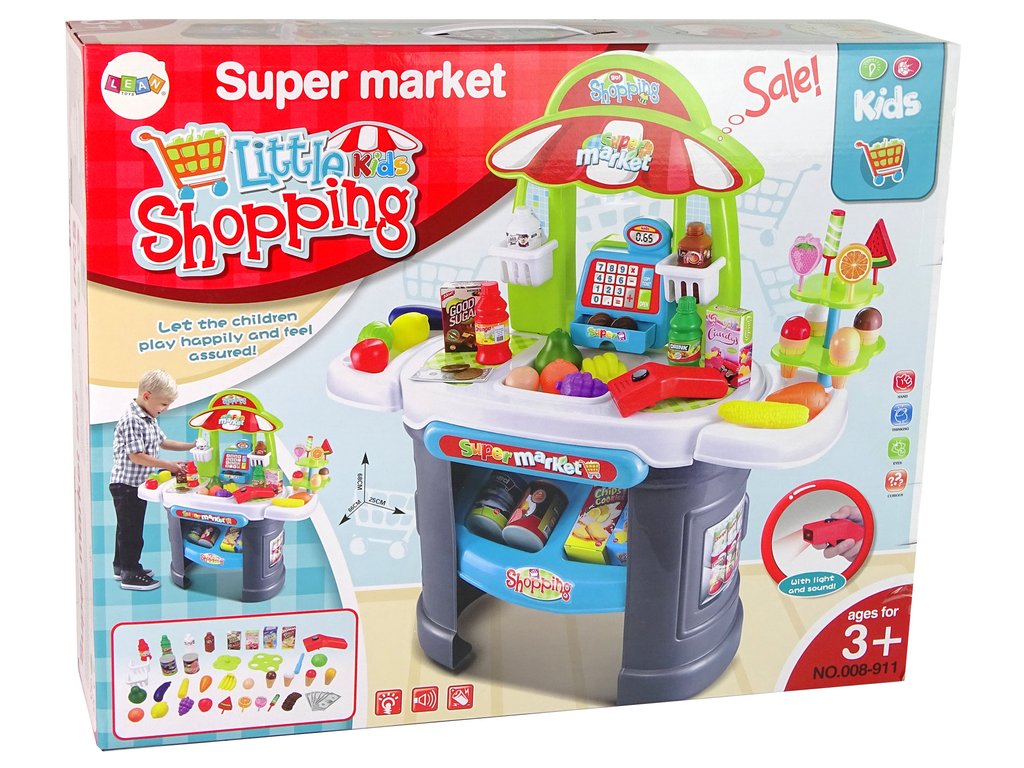 Игра на магазин е една от най-любимите игри на децата, затова в нито една детска стая не бива да липсва този Детски магазин за хранителни стоки. Комплектът включва оборудвана каса с хранителни продукти и скенер със звукови и светлинни ефекти.