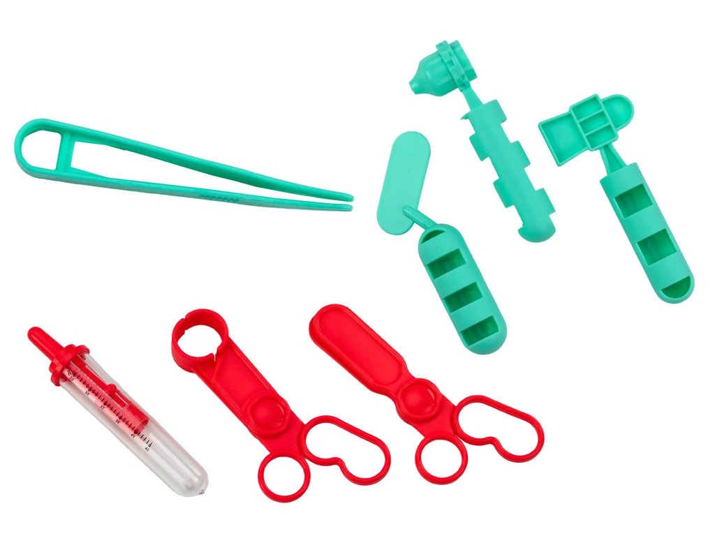 Детският медицински комплект не е просто играчка, а и инструмент за учене и развитие. Създаден специално за млади изследователи, комплектът съдържа основни медицински инструменти като стетоскоп, ножички, пинсета и спринцовки, които помагат на децата да се запознаят с базовите медицински уреди.