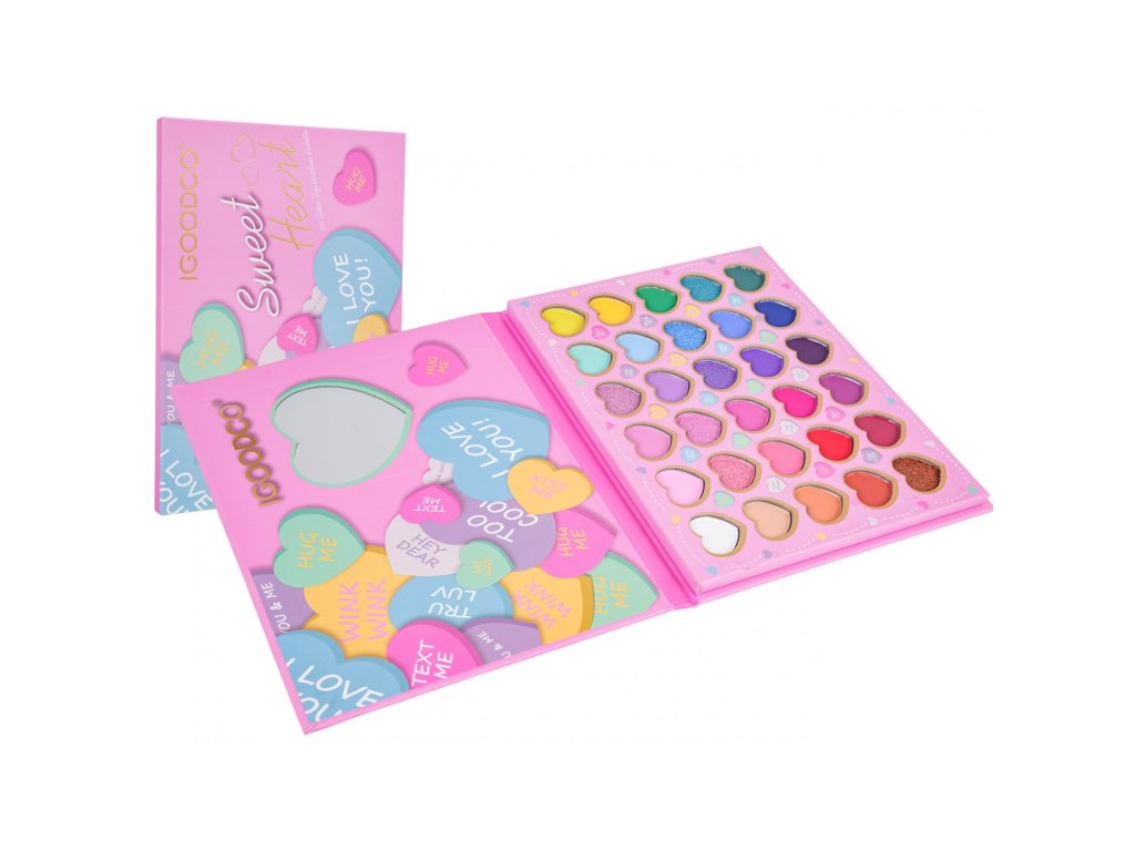 Козметичен комплект за деца над пет години. Комплектът се състои от палитра с огледало и 30 сенки за очи във формата на сърце. Козметиката е направена от безопасни за деца материали, хипоалергенна е и се отмива много лесно. Необходимо е само вода с добавка на детски душ гел или сапун.