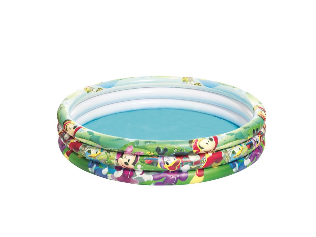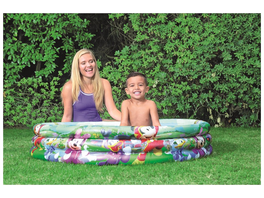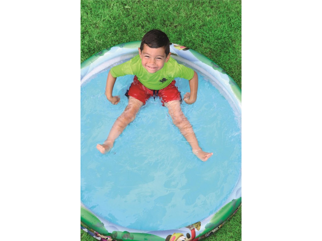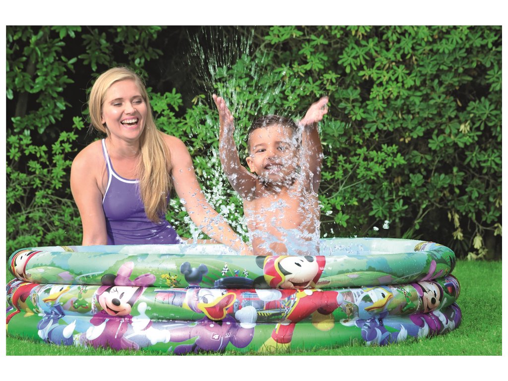 Детски надуваем басейн 122x25 см Мики Маус осигурява на вашето дете забавление и активно движение във водата. Лесен за надуване и спускане, което го прави удобен за съхранение.