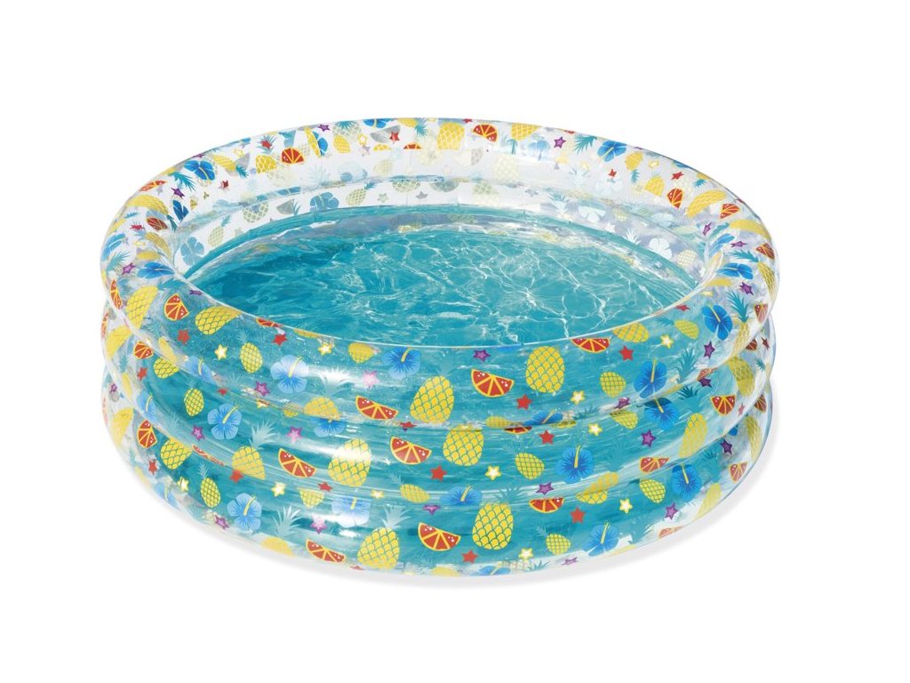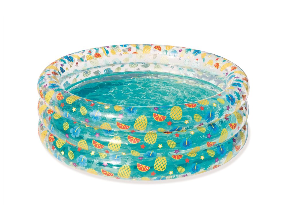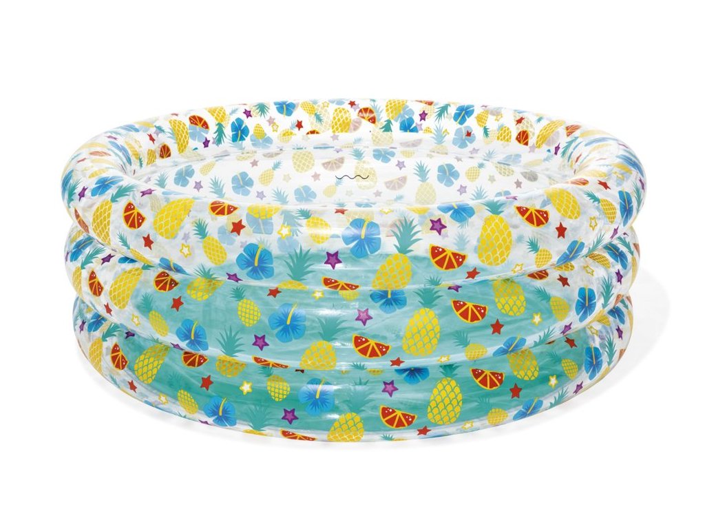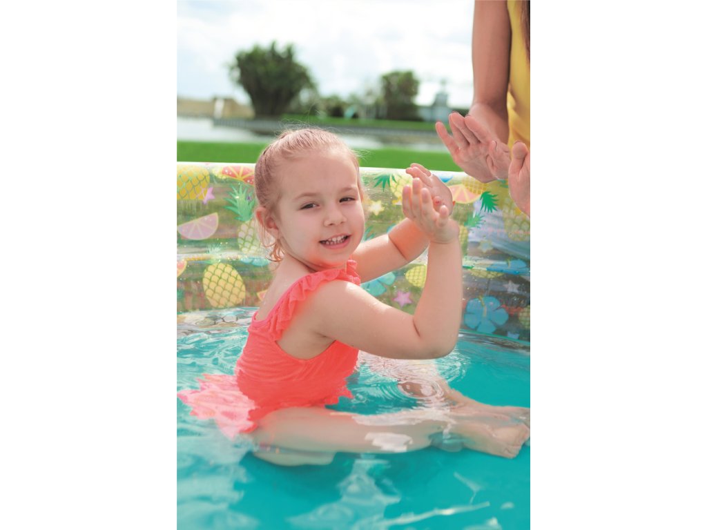 Детски надуваем басейн 170x53 см плодове осигурява на вашето дете движение и забавление във вода. Благодарение на компактните си размери, е идеален за деца над 6 години. Лесно се надува и спуска, което го прави удобен за съхранение.