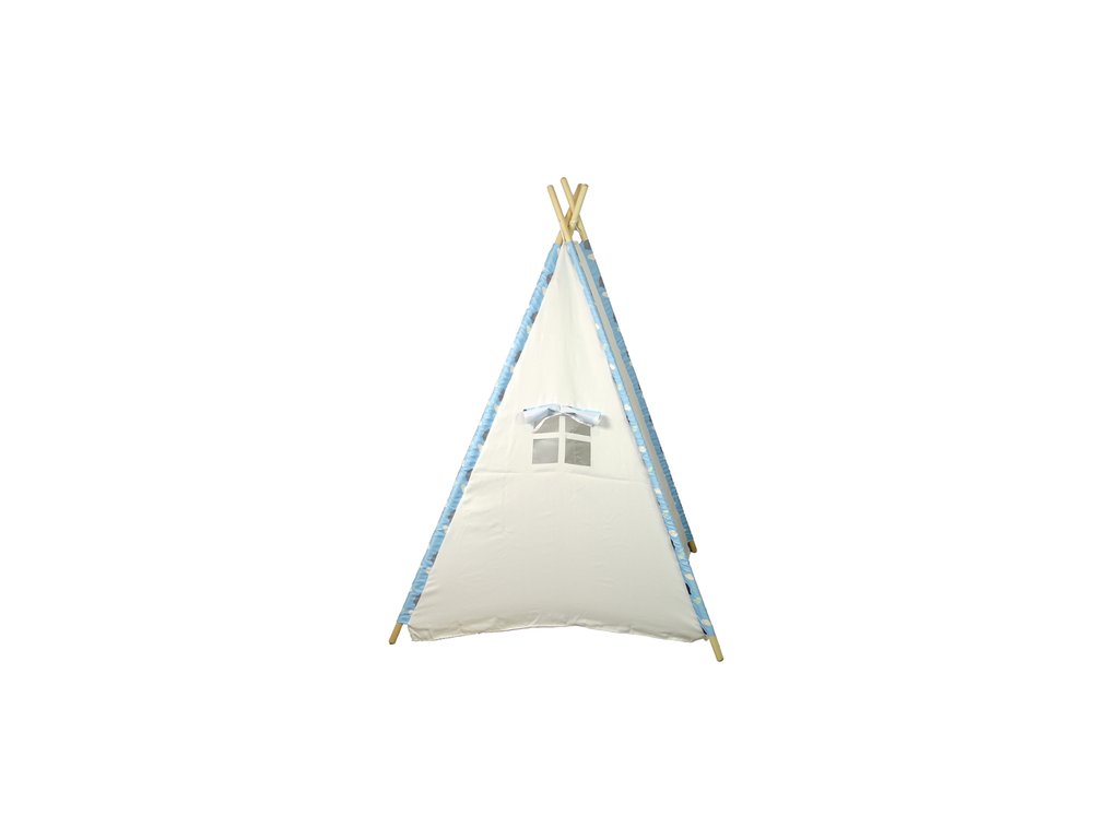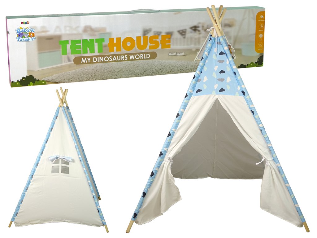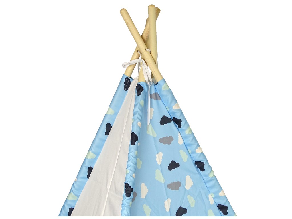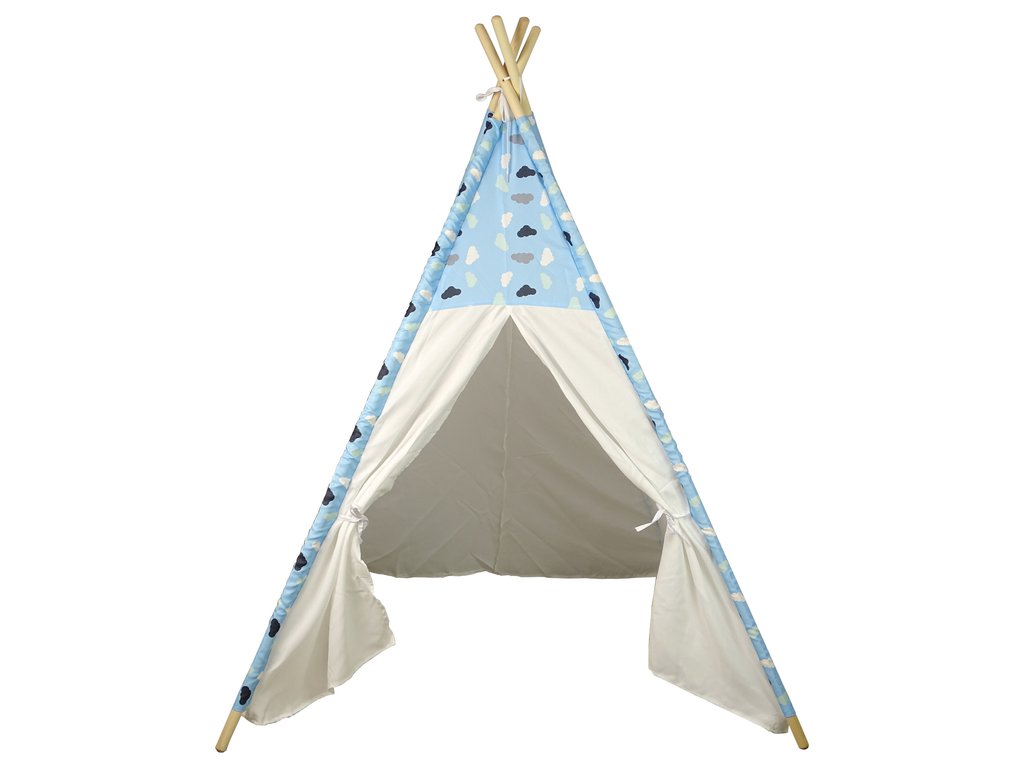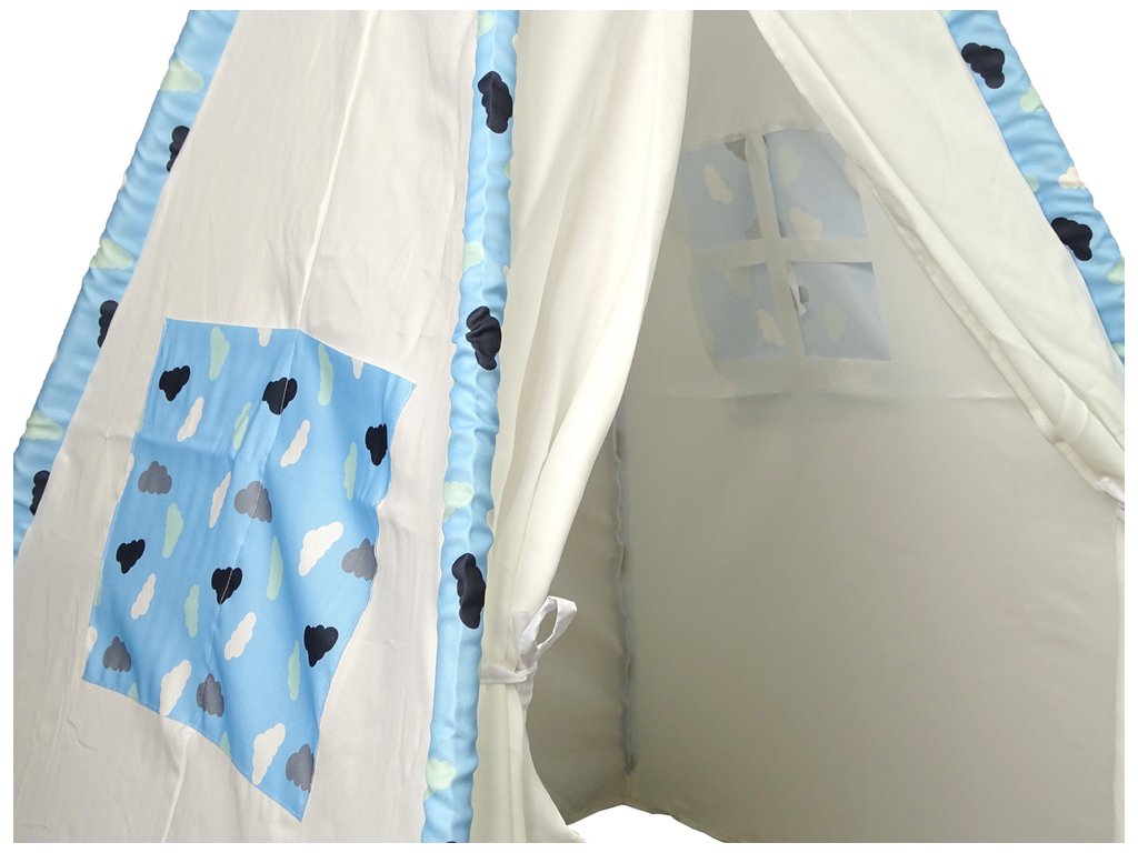 Детски палатка тип типи с облачета е перфектен за игра както вкъщи, така и на открито. Палатката има връзки, които събират стените, осигурявайки удобен вход и изход.