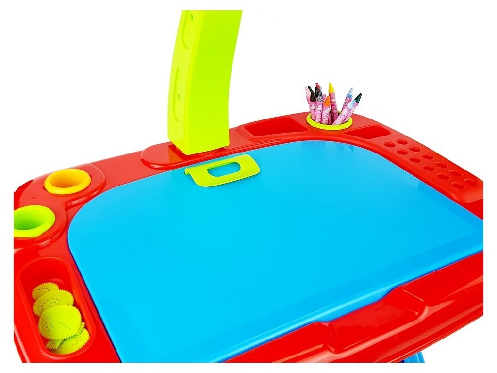 Детски проектор за рисуване с масичка, от който може да се прожектират 36 изображения върху шаблони, е идеалният подарък за всяко креативно дете. Шаблоните включват изображения на зеленчуци, превозни средства и животни.
