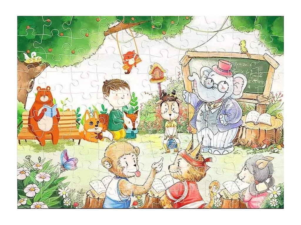 Детски пъзел Училище за животни 100 части е създаден за деца от 3 години нагоре. Играчката е отличен начин за развитие на фини моторни умения и концентрация при децата.