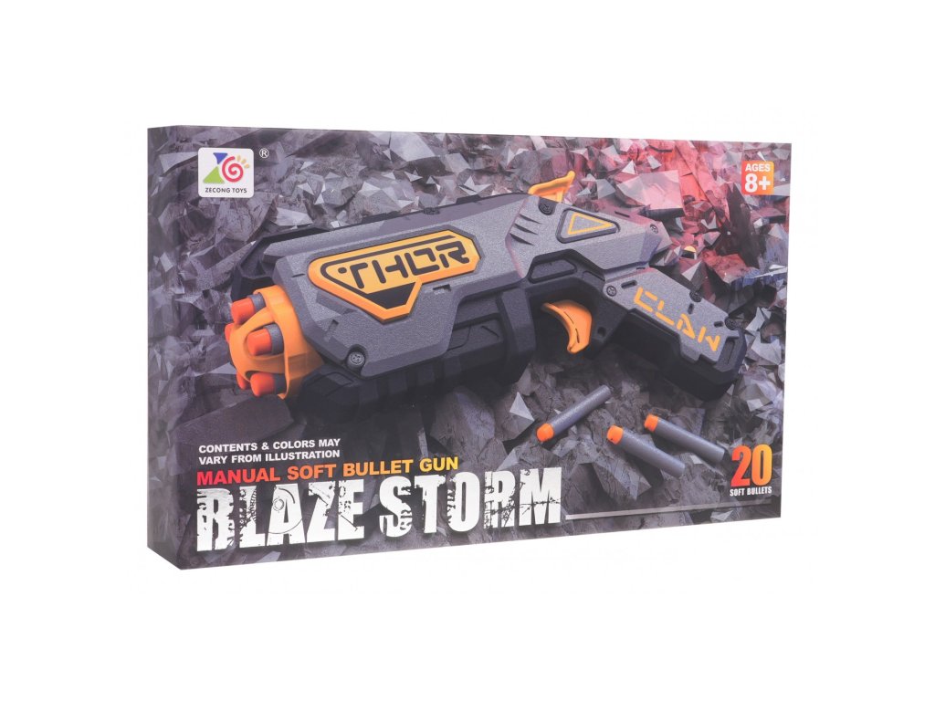 Детски ръчен пистолет за пяна патрони Blaze Storm сив е оборудван с пружинен механизъм, което означава, че не изисква батерии. Управлението на оръжието е изключително лесно – просто се поставят патроните отпред на пистолета и се натисне спусъкът, след което пистолетът изстрелва патрон.