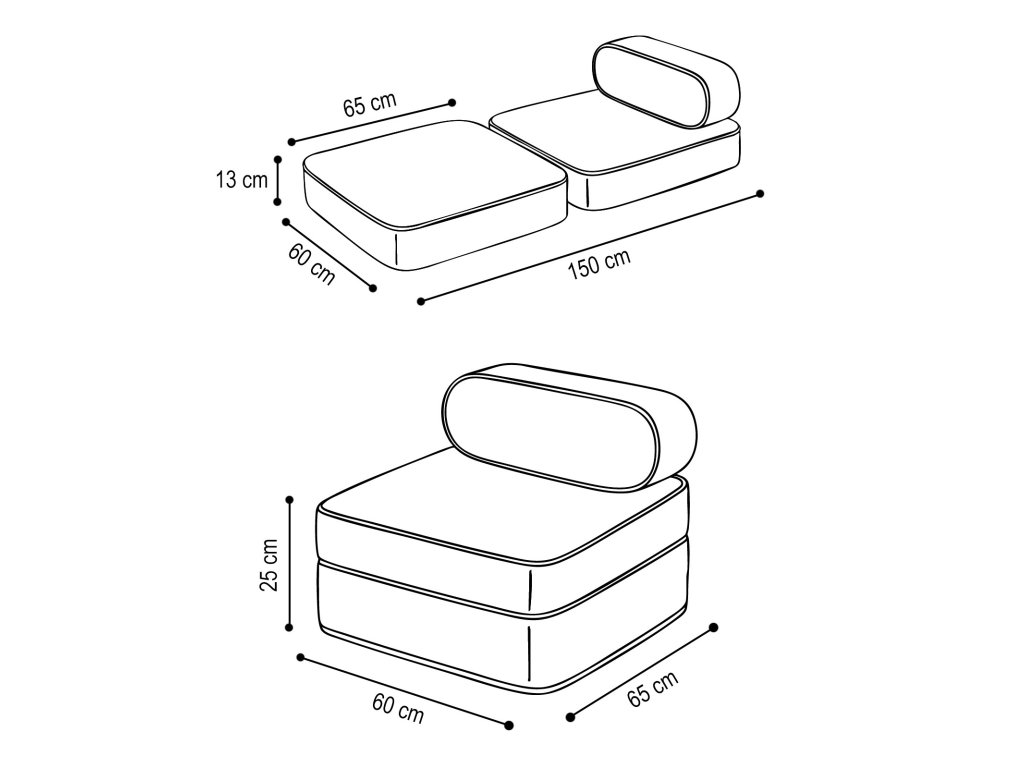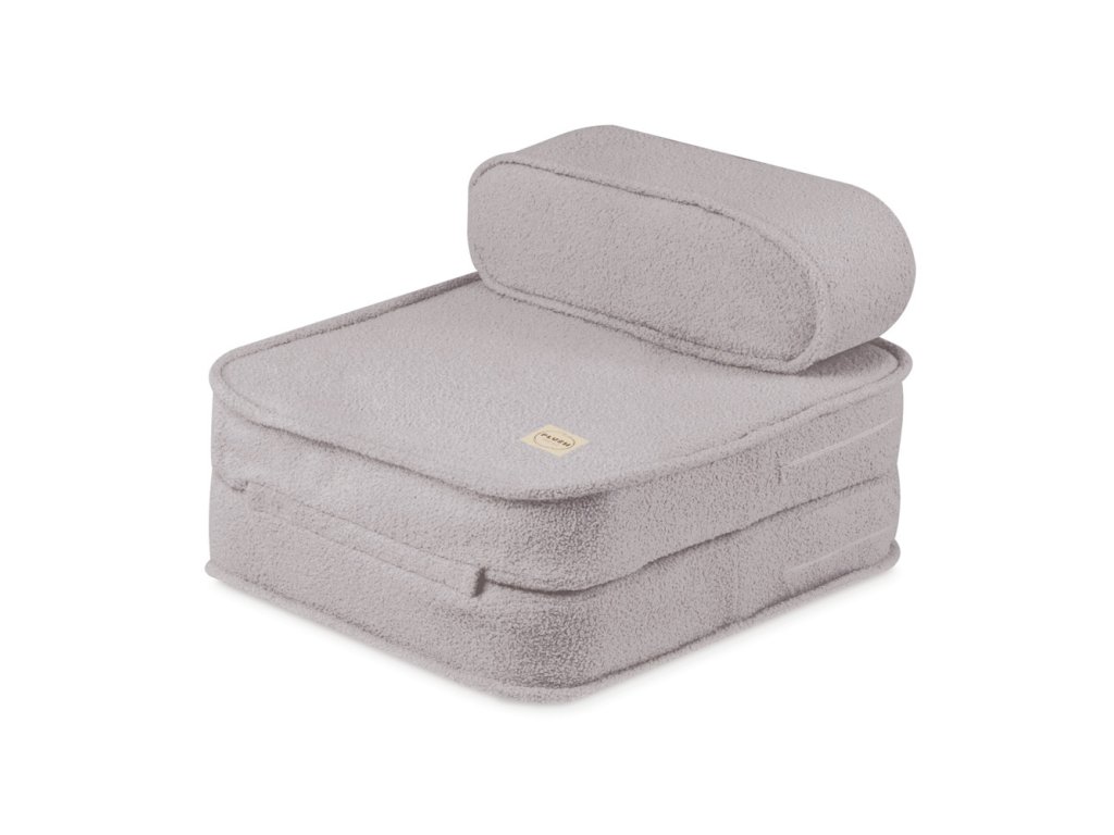Благодарение на практичния разтегателен механизъм, фотьойлът лесно се превръща в уютен матрак за спане – идеален за дрямка и игри. След сгъване той придобива формата на удобен фотьойл, който поддържа правилната стойка на гръбначния стълб и допринася за здравословното развитие по време на почивка и игра.