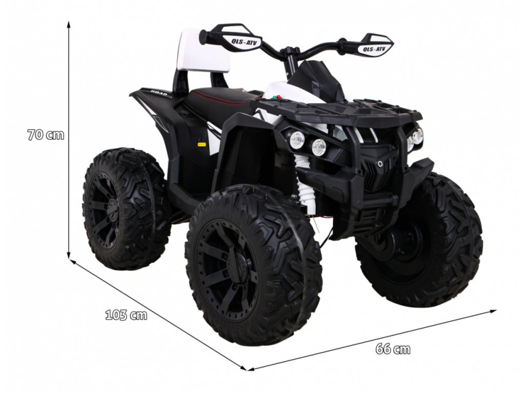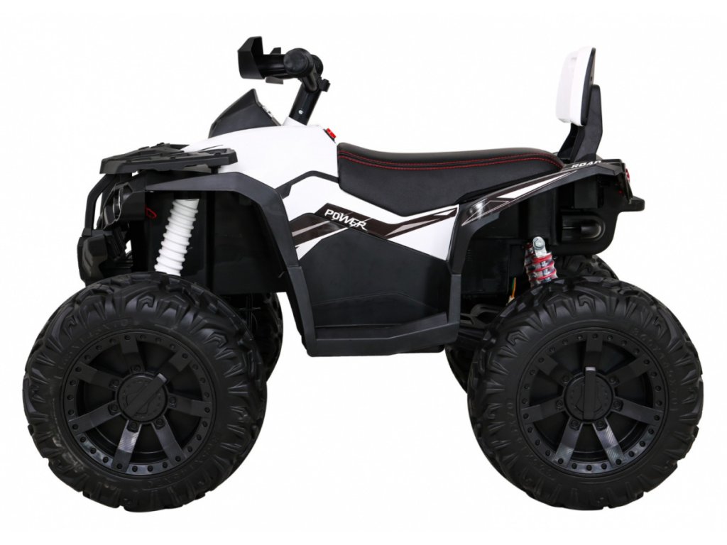 Детско акумулаторно атв ATV Power 12V 14Ah 4x4 бяло разполага с акумулатор с капацитет 12V 14Ah и четири мотора с мощност 45W, което означава, че има 4x4 задвижване. За комфортно возене се грижат пянираните EVA гуми и седалка, изработена от екологична кожа.