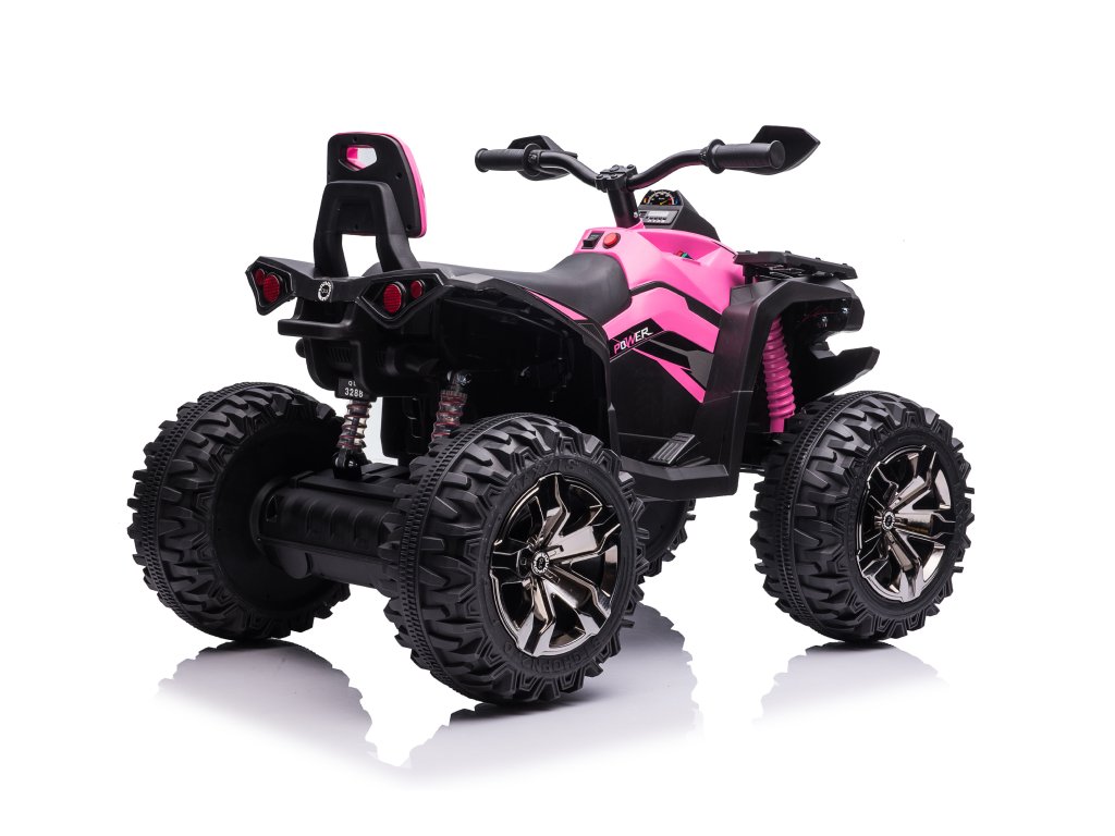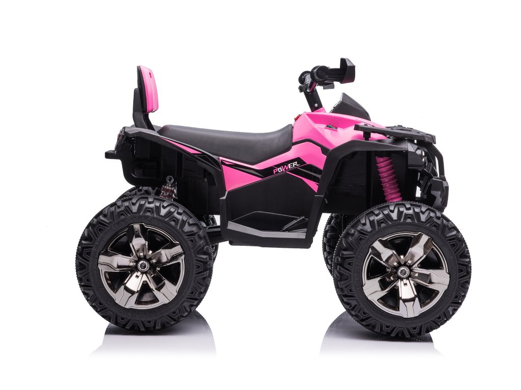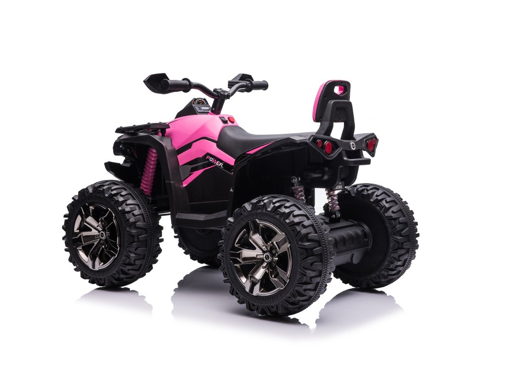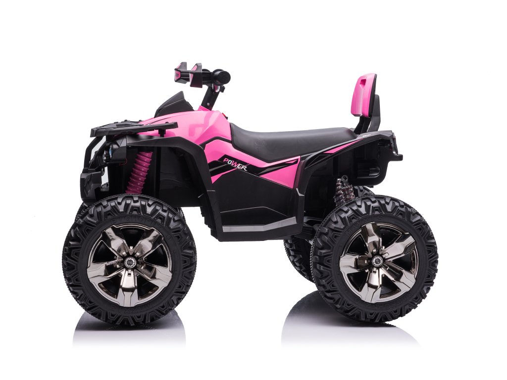 Детско акумулаторно атв ATV Power 12V 14Ah 4x4 розово е оборудвано с батерия с капацитет 12V 14Ah и четири мотора с мощност 45W всеки, което означава, че ATV-то има задвижване 4x4. За комфортно каране се грижат пянните EVA гуми и седалка от еко кожа.
