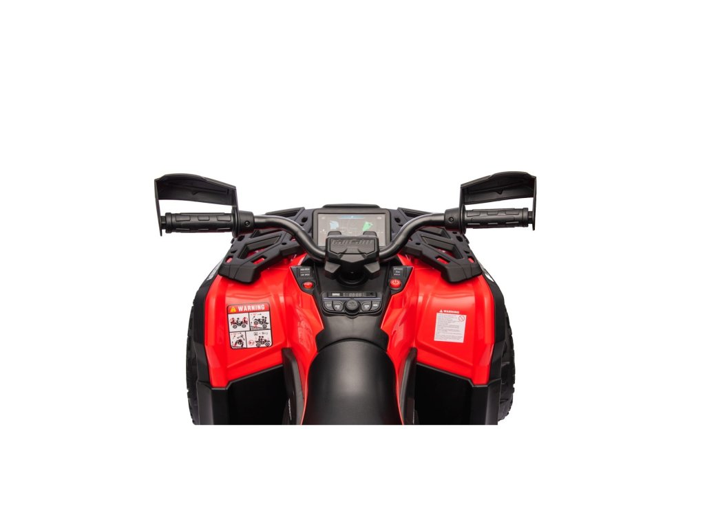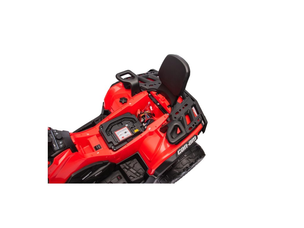 Детско електрическо акумулаторно атв Can-Am Outlander ATV 4x200W червено е оборудвано с четири мотора с обща мощност 800W и широки EVA пяни колела. Детското ATV лесно се справя с различни типове терен, включително неасфалтирани пътища и хълмове.