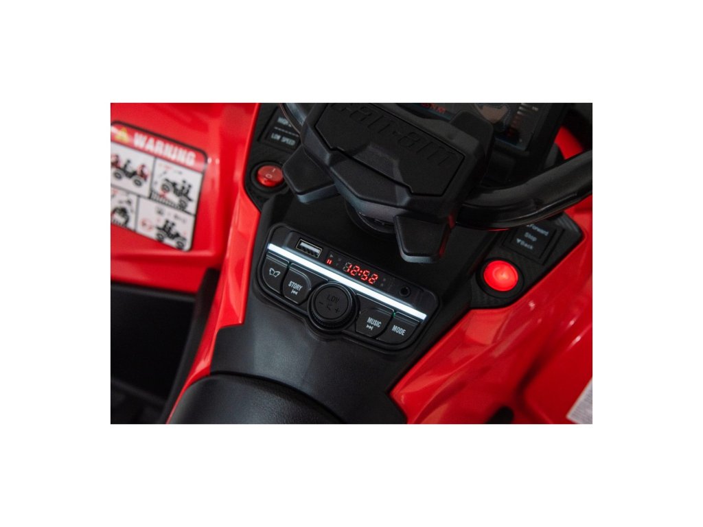 Сред модерното оборудване е музикална конзола с входове за USB, MP3, Радио, AUX, Bluetooth и предварително записани мелодии. Детското ATV Can-Am Outlander разполага с предни и задни осветителни тела, позволява движение във всички посоки и е с максимално натоварване до 50 кг.