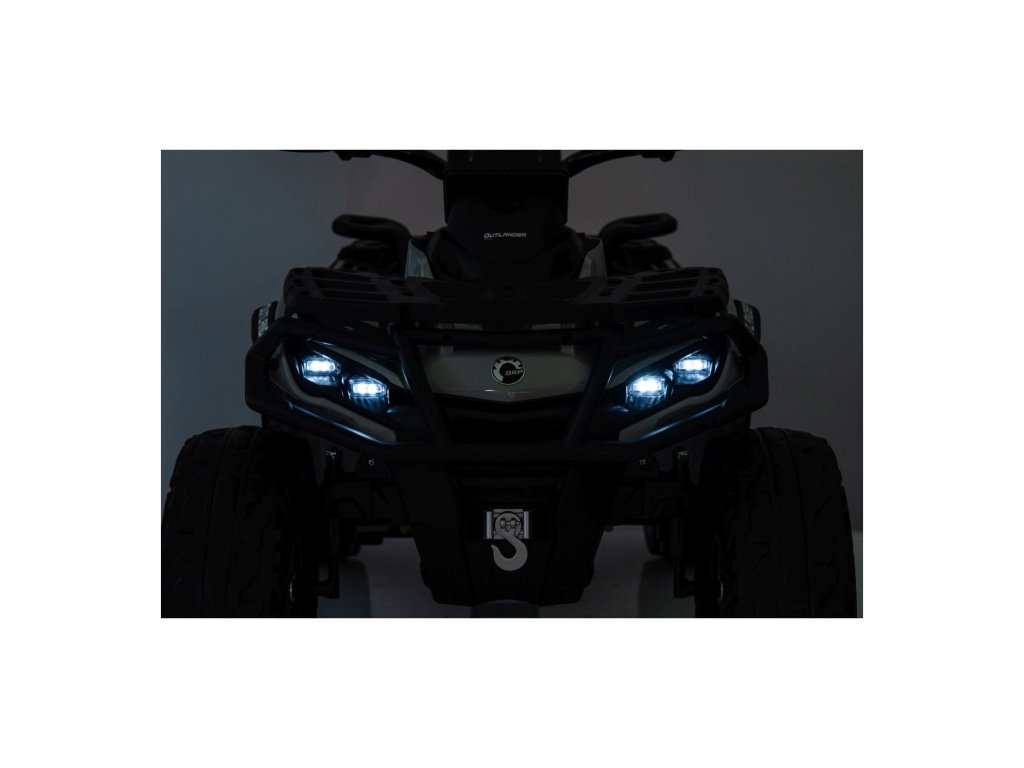 Детско акумулаторно атв Can-Am Outlander ATV 4x200W сиво е снабдено с четири мотора с обща мощност 800W и широки гуми от EVA пяна. АТВ-то лесно се справя с различни терени, неасфалтирани повърхности и наклони.