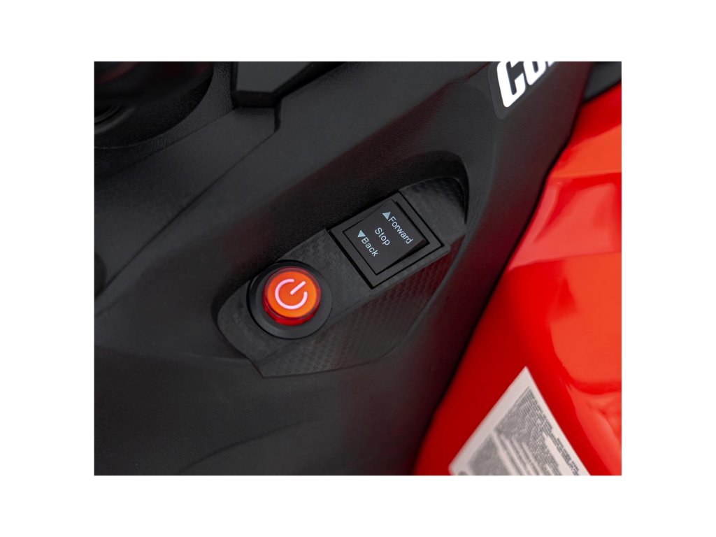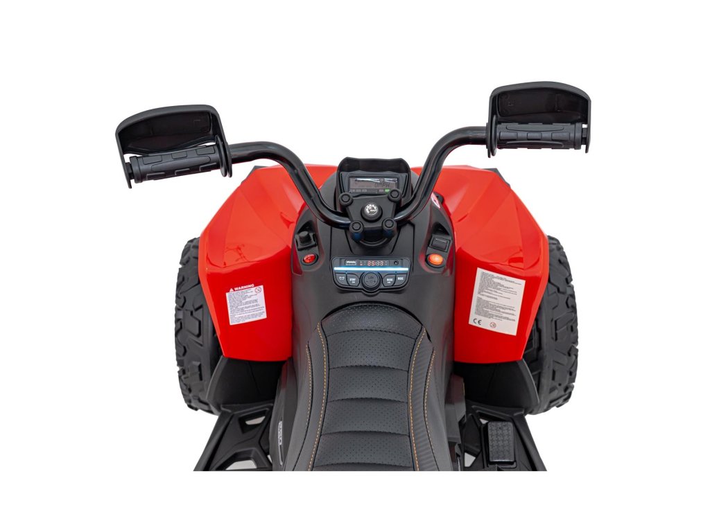 Сред оборудването е включен музикален панел с входове за USB, MP3, Радио, AUX, Bluetooth и предварително записани мелодии. Детското атв разполага с предни и задни LED светлини, позволява движение във всички посоки и максимално натоварване до 30 кг.