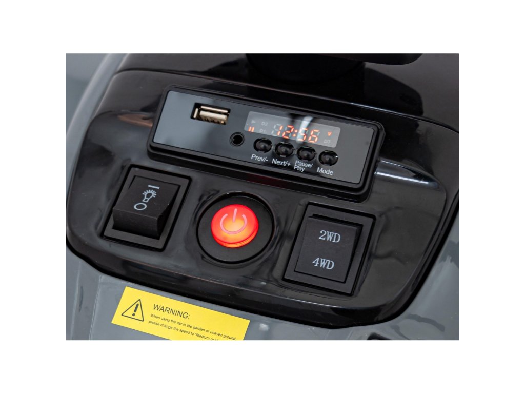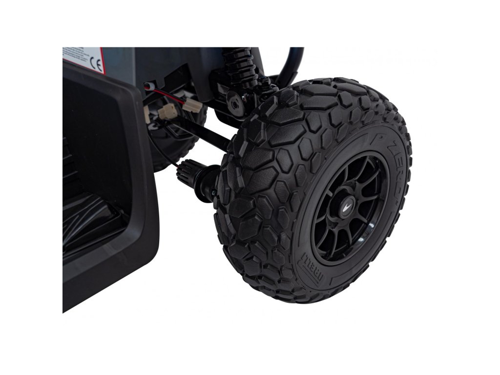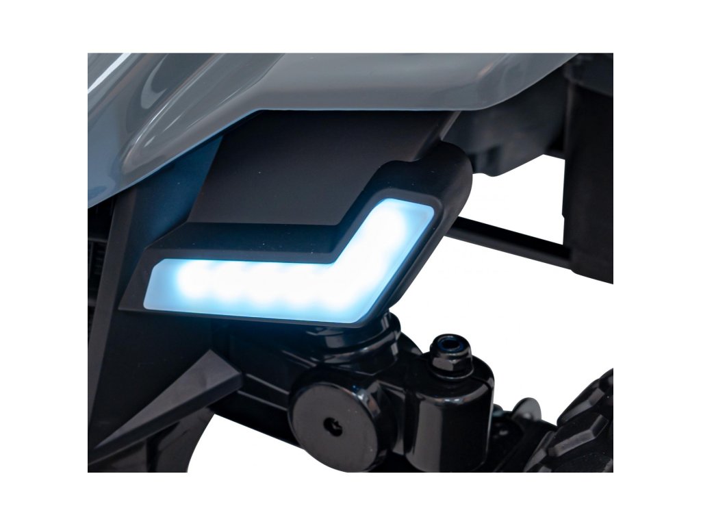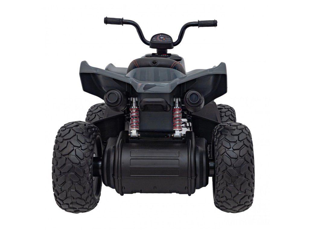 Сред оборудването е включен музикален панел с входове за USB, MP3, AUX и предварително записани мелодии. Детското атв разполага с предни LED светлини, позволява движение във всички посоки и максимално тегло до 30 кг.