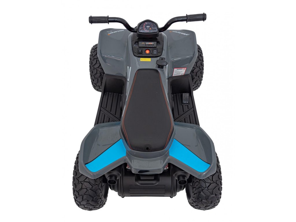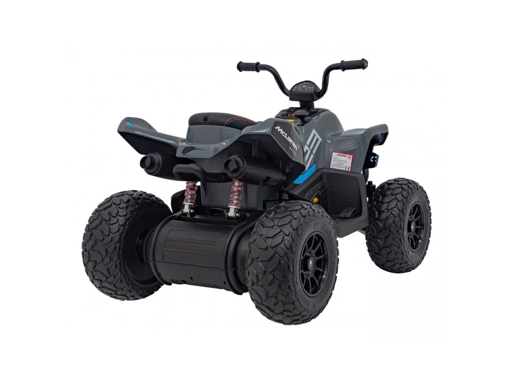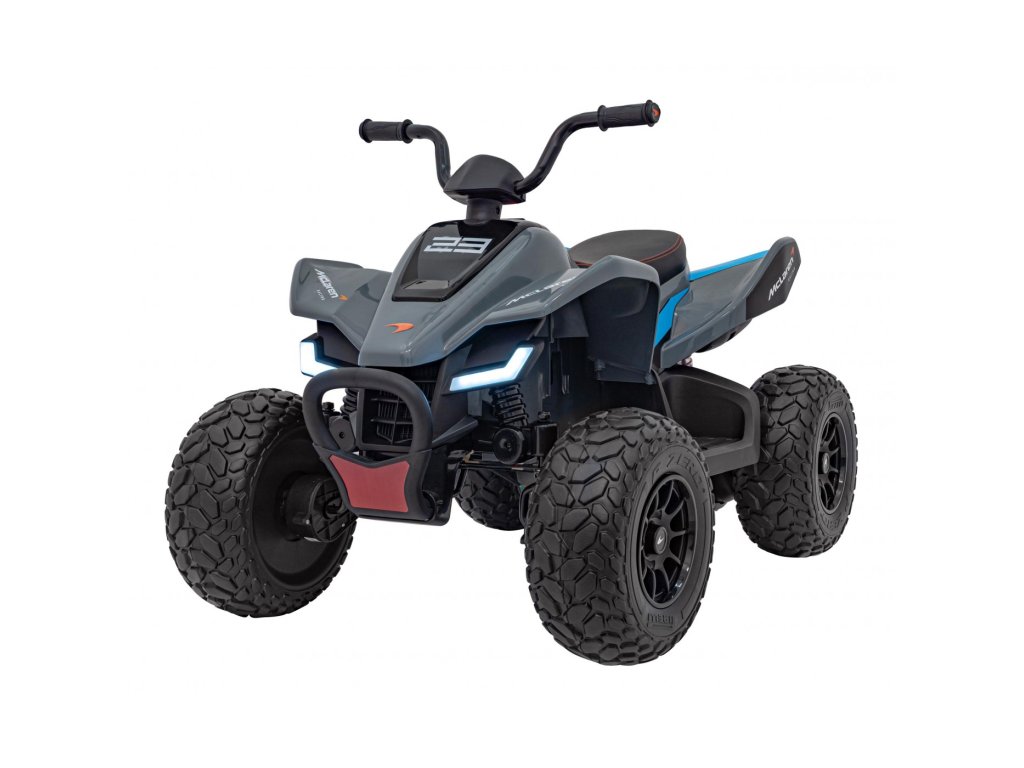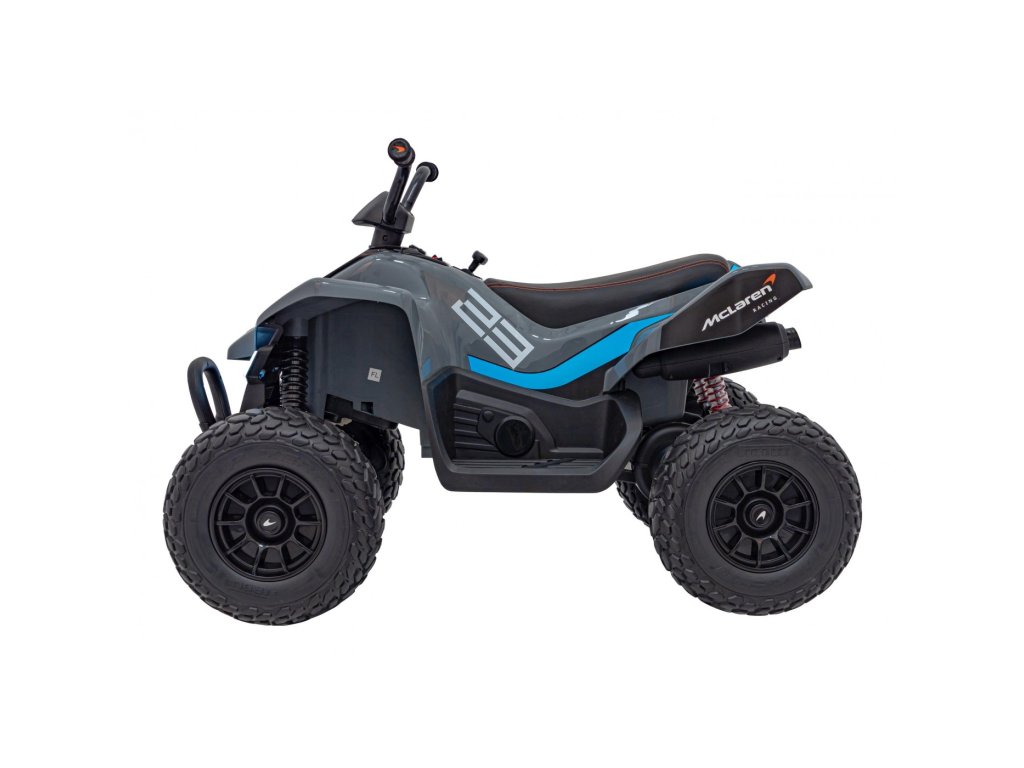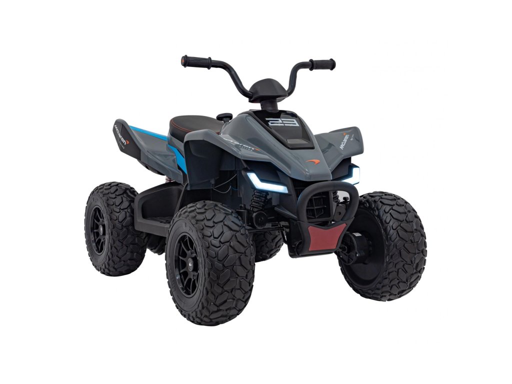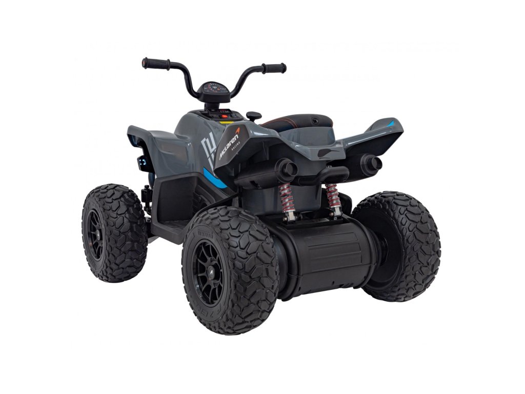 Детско акумулаторно атв McLaren Racing MCL 35 сиво е оборудвано с четири мотора с обща мощност 140W и широки гуми от пяна EVA. Атв-то лесно се справя с различни терени, неасфалтирани пътища и хълмове.