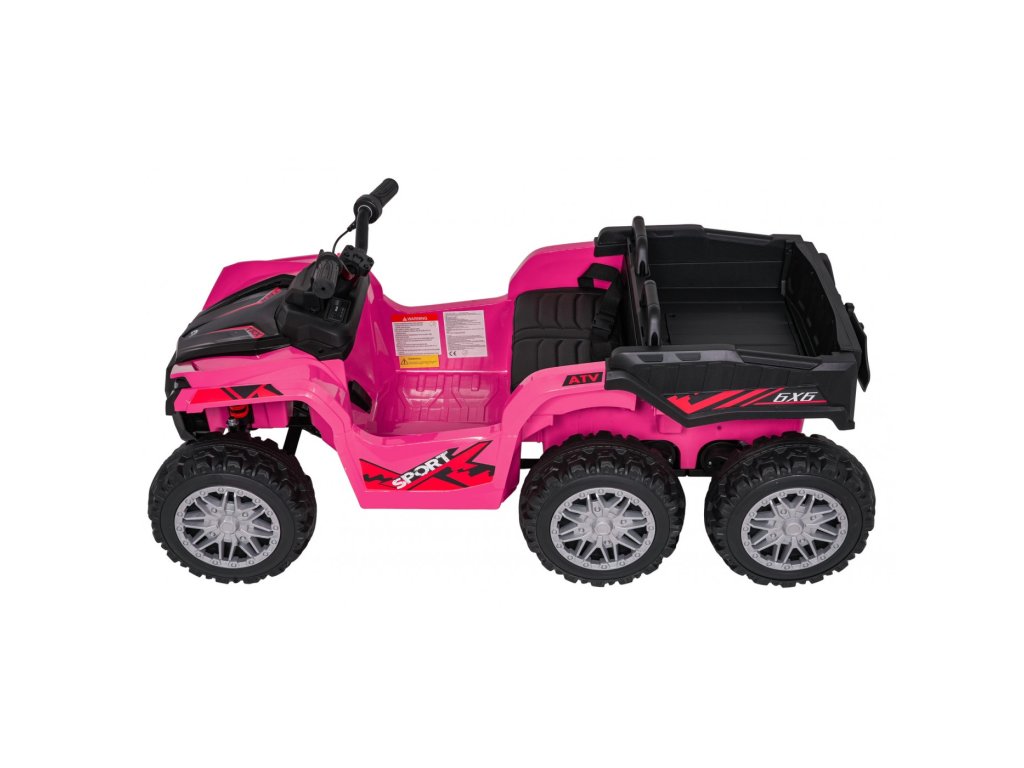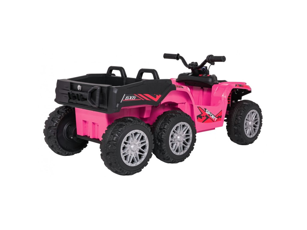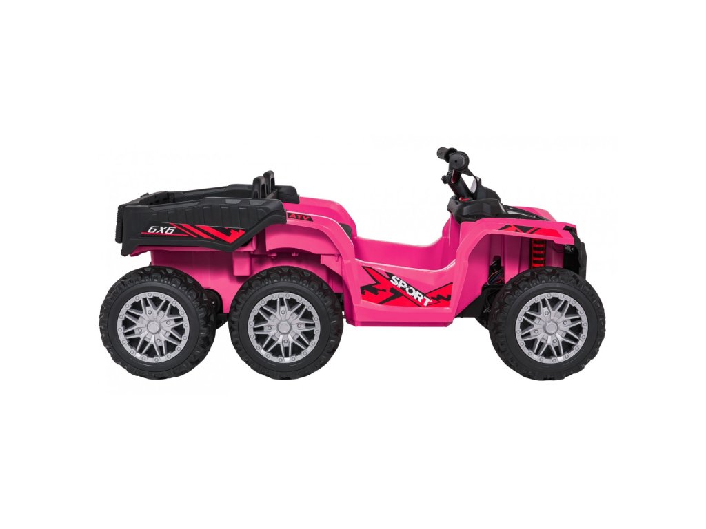 Детско акумулаторно атв Quad Sport TX розово е идеалният избор за малките приключенци, които желаят вълнуващо и безопасно каране. Благодарение на четирите мощни мотора с 35 W и две батерии 12V 7Ah, децата ще се наслаждават на часове забавление. Дистанционното управление с 2,4 GHz контролер дава възможност на родителите за пълен контрол над возилото, а бутонът за спиране STOP моментално спира превозното средство.