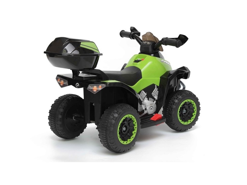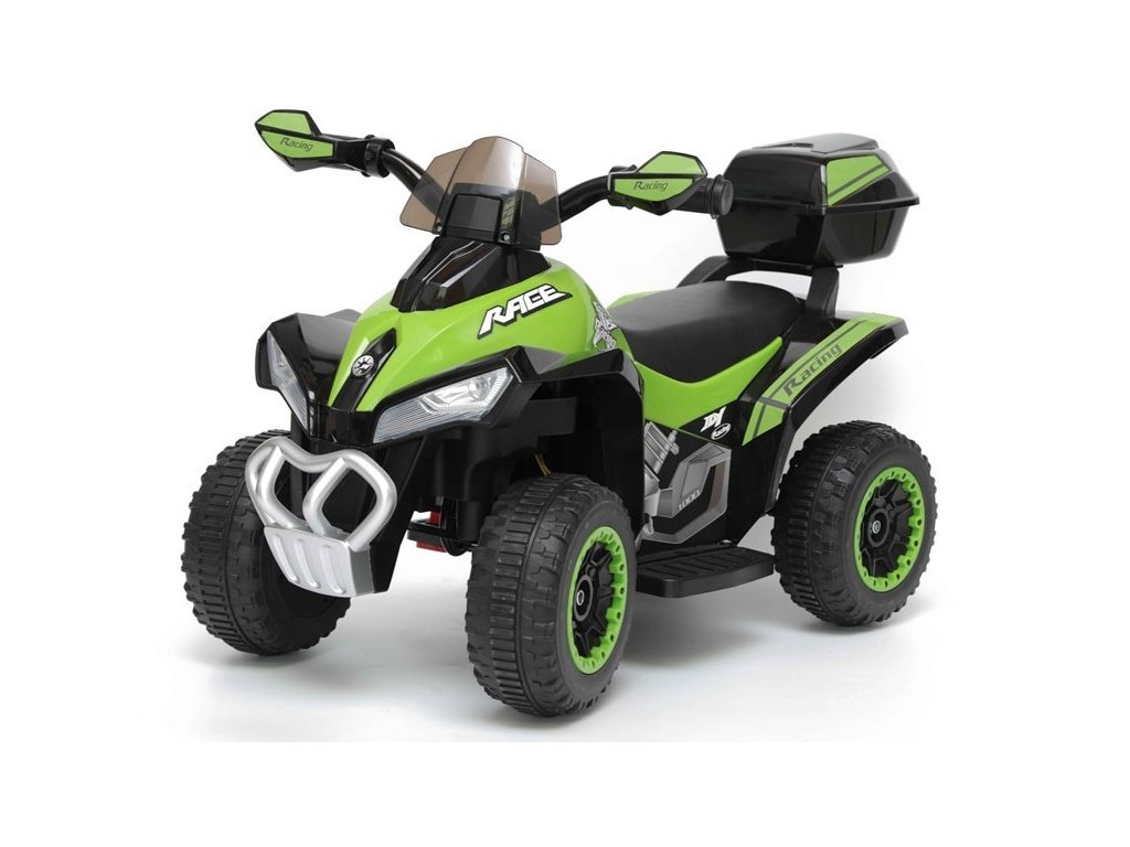 След като детето отмести крака от педала за газта, Детско акумулаторно атв Race зелено спира бавно и плавно, затова детето не трябва да се тревожи за спирачките и няма да усети внезапно спиране. Това ATV е подходящо за деца на възраст от 1,5 до 3 години. Размери на продукта: 78,5 x 40,5 x 46 см.