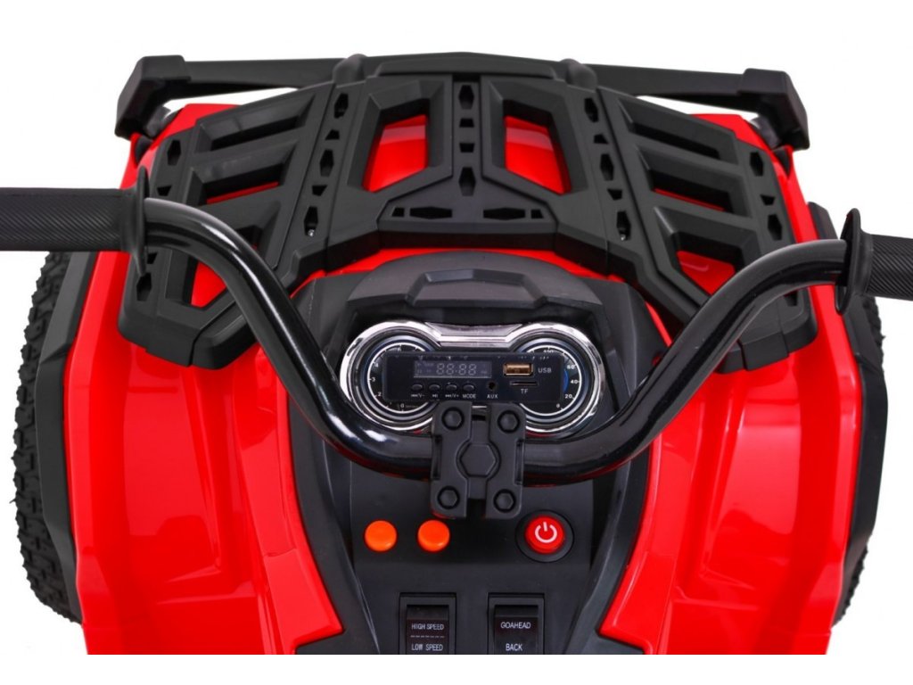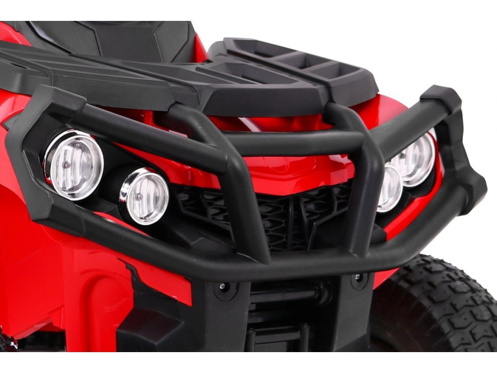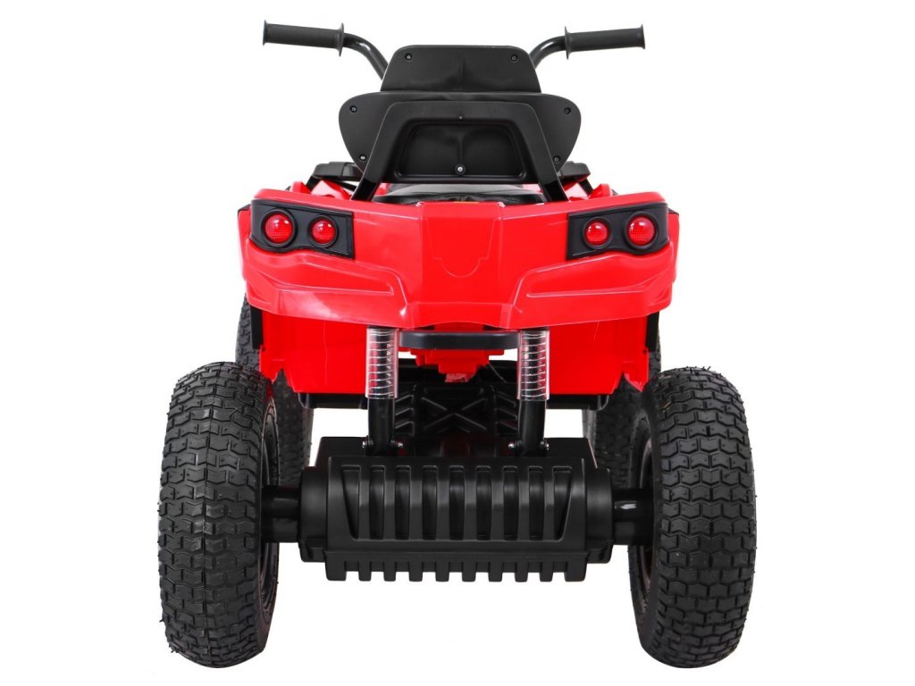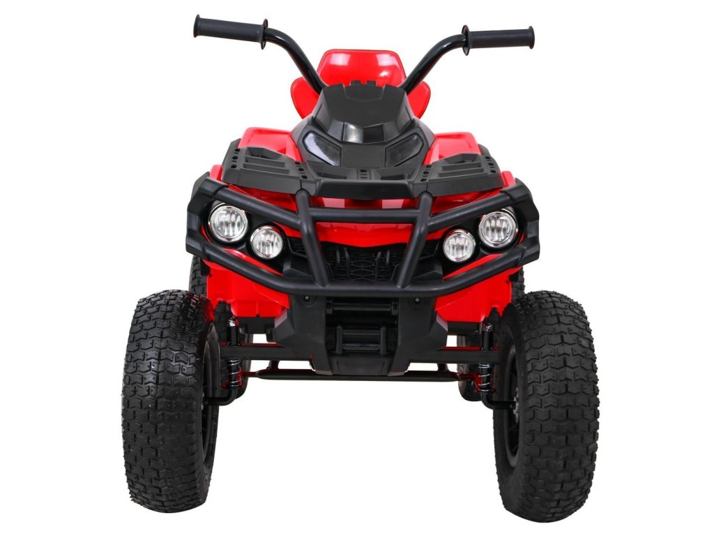 Детско акумулаторно атв с надуваеми гуми червено идва с мощен електрически мотор. Предназначено е за всички деца с максимално тегло до 30 кг. Надуваемите гумени колела се адаптират към различни терени и се справят дори с неравен път. Детето сяда на удобно оформено седалка от екологична кожа и осветява пътя напред и назад с LED светлини.