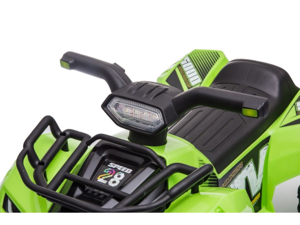 Детско акумулаторно атв Storm зелено е с подходящ размер за деца от 1,5 до 3 години, като максималното му натоварване е 20 кг. Разполага с удобно оформено седалче, широкоедни колела и звукови и светлинни ефекти. Музикален панел е оборудван с входове AUX, USB и предварително заредени мелодии. За по-добра видимост при каране детето може да използва предни LED светлини.