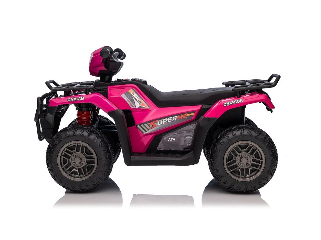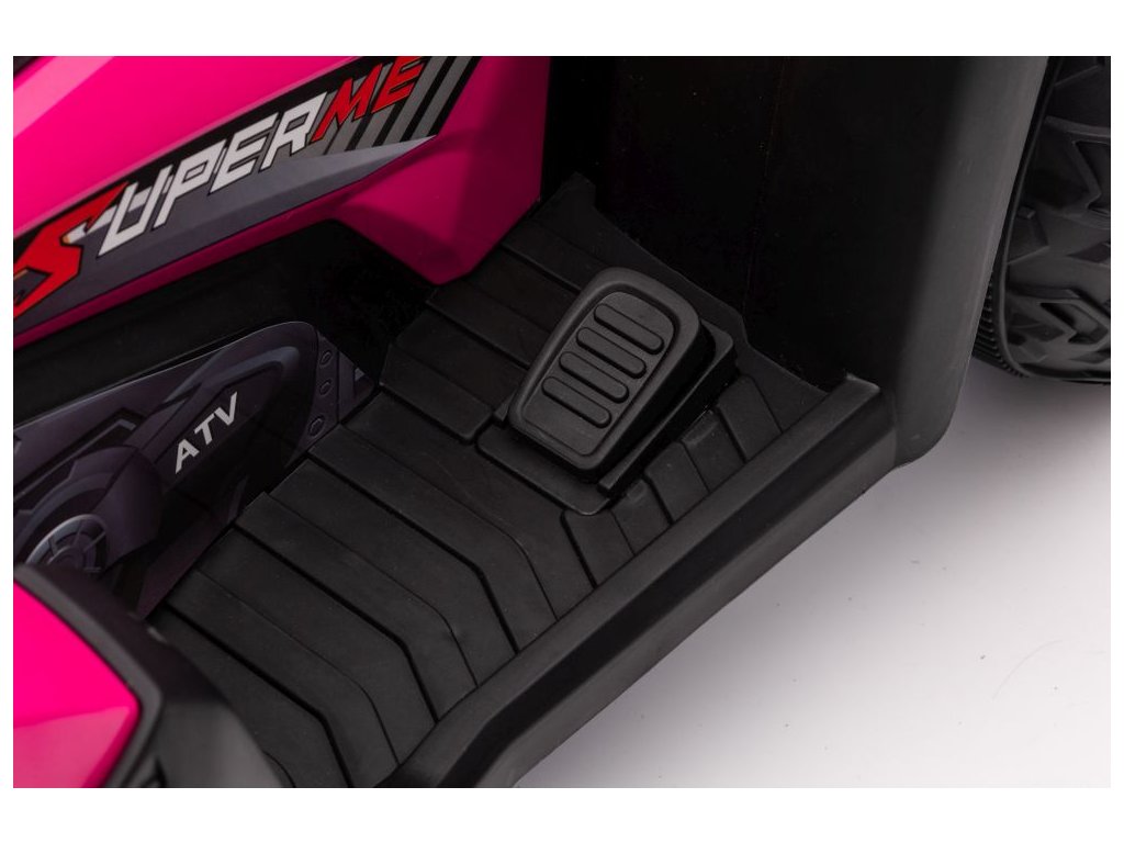 Детско акумулаторно атв Superme розово е оборудвано с два двигателя с обща мощност 90W. Атв-то лесно преодолява различни терени, неравни повърхности и стръмни баири.