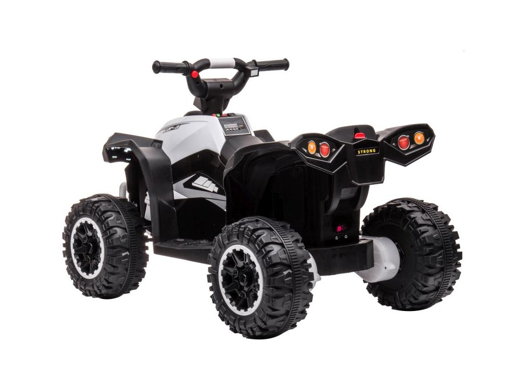 Акумулаторното атв има плавно ускорение, а за каране в неравен терен скоростта е между 3-3,5 км/ч. Родителите могат винаги да се намесят в управлението чрез дистанционното управление. Комфортът е осигурен от пластмасово седалче и пластмасови колела.