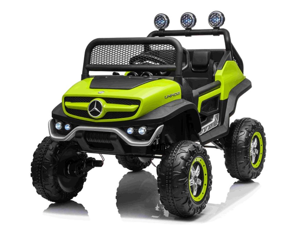 Детско акумулаторно бъги Mercedes-Benz Unimog 4x4 зелено е едно от най-популярните офроуд бъгита на пазара. Оборудвано е с големи колела от здрав пяна EVA, които са тихи и подходящи за различни терени.