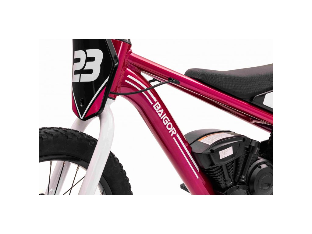 Детско акумулаторно моторче BAIGOR 23 PRO розово е оборудвано с въздушни гуми, които осигуряват тиха и комфортна езда без допълнителен шум. Детето сяда удобно на ергономично оформена седалка от еко кожа, с максимално допустимо тегло до 60 кг. BAIGOR 23 PRO разполага със задна дискова спирачка, задвижване с верига и развива скорост до 25 км/ч. В комплекта са включени батерия и зарядно устройство.