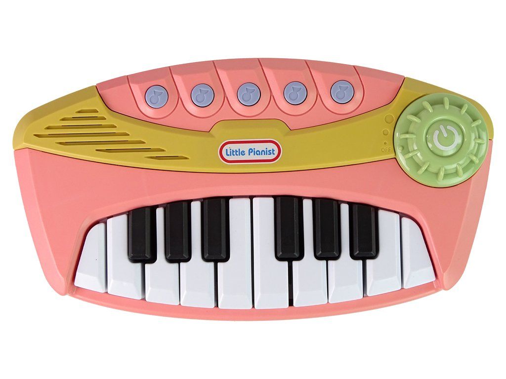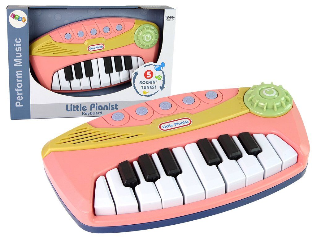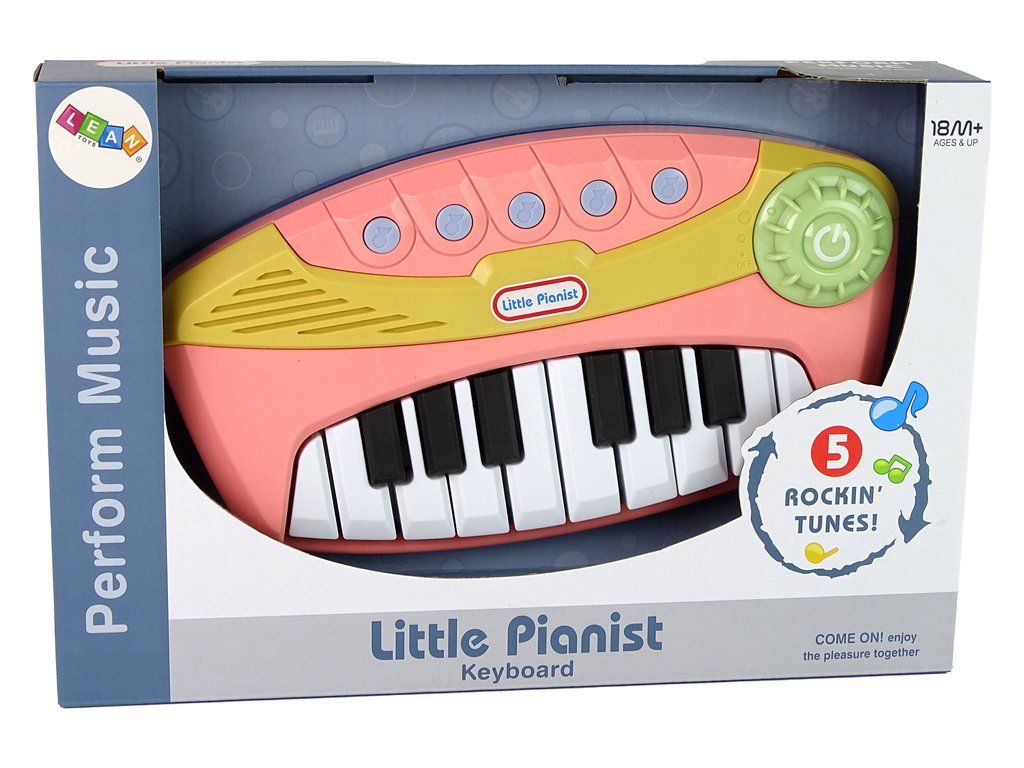 Детско интерактивно пиано розово, което насърчава музикалното изследване и предлага изключителни възможности. Разполага с 16 клавиша, които позволяват самостоятелно свирене, и 5 бутона с готови, весели мелодии. Големият бутон отдясно регулира силата на звука. Освен това, когато натиснете бутоните, те светят и създават завладяващ визуален ефект.