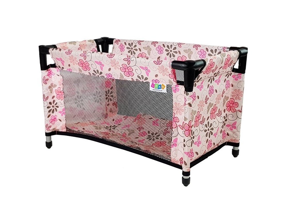 Детско легло за кукли Алиса розово с цветя е подходяща играчка за момичета над 3 години.