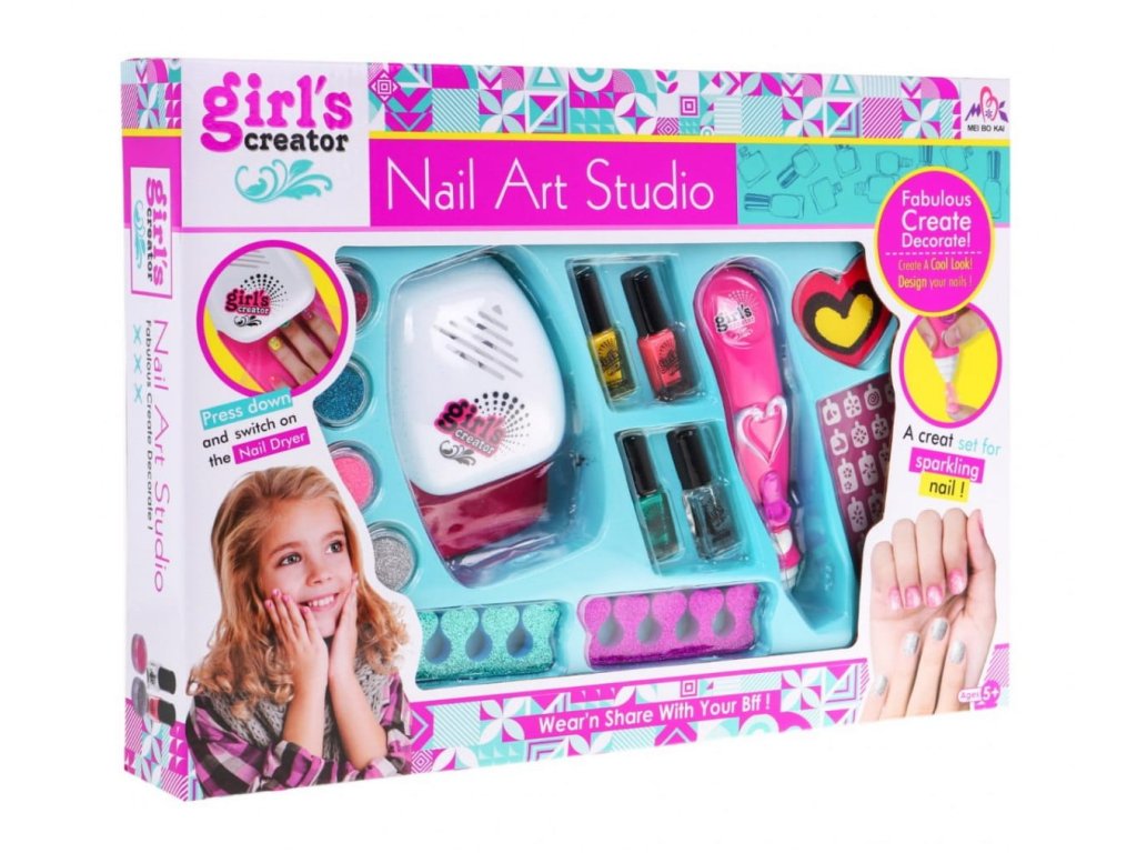 Детско студио за нокти е изработено от нетоксични материали. След лакиране лакът лесно се отлепя, без необходимост от лакочистител. Подходящо е за деца над 5 години.