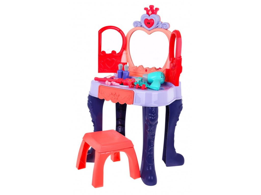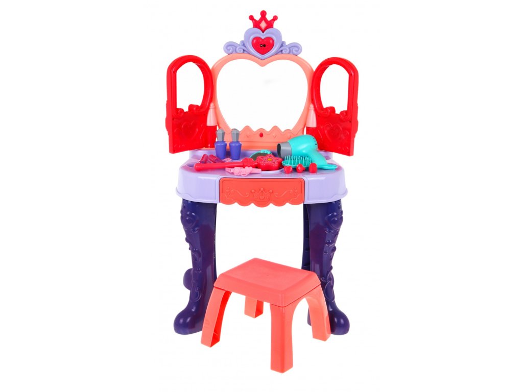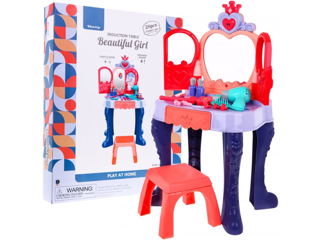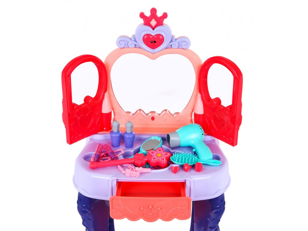 Тоалетното бюро разполага с чекмедже, където може да се съхраняват аксесоарите. В пакета има сешоар, който функционира като истински – издава звуци и има вентилатор.
