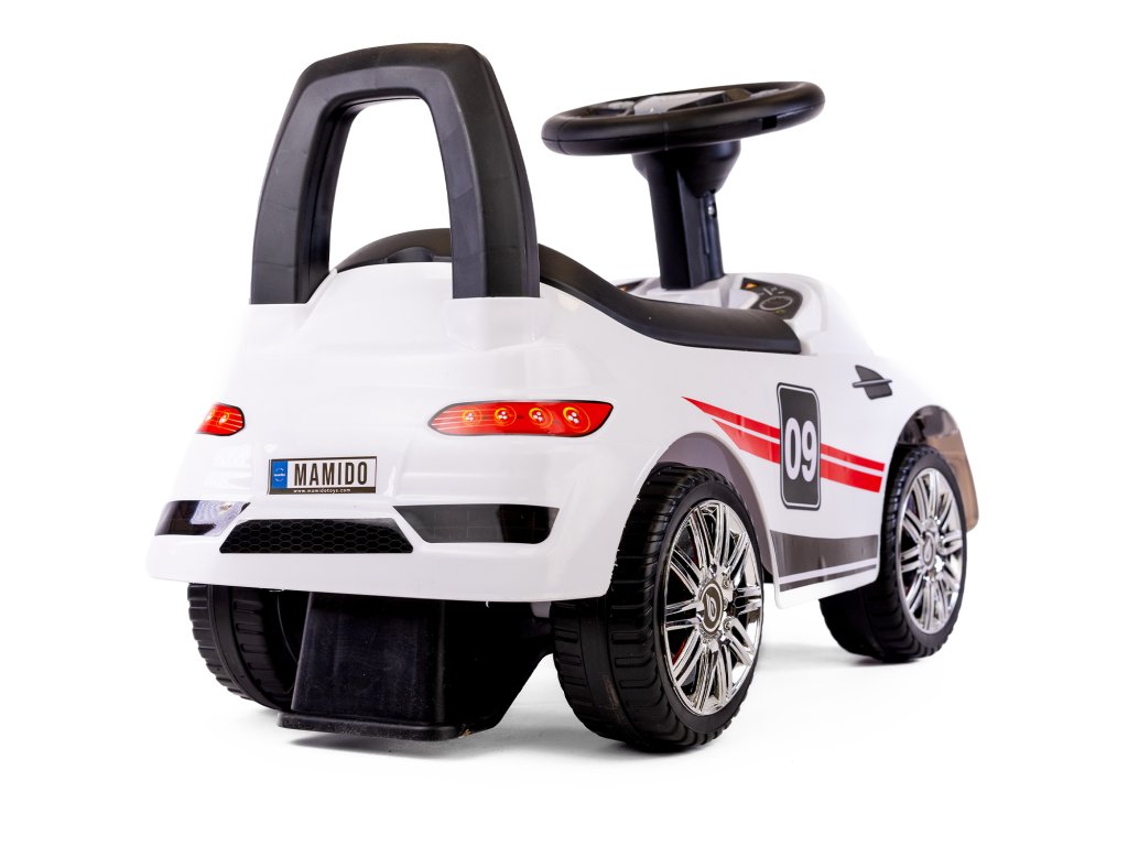 Детската триколка MT269 със звукови ефекти бяло има сертификат CE и е произведена от здрава материя, гарантираща дълъг експлоатационен живот. Конструкцията на превозното средство е адаптирана за най-малките деца, като липсват опасни и остри ръбове, а размерите на всички елементи са съобразени с височината на малчуганите. В предната и задната част на превозното средство са монтирани защитни механизми, предпазващи от преобръщане.