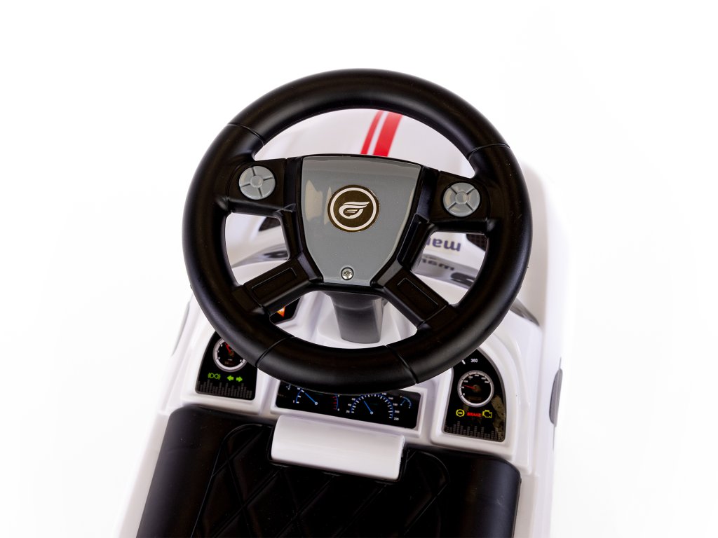 Голямото предимство на тази детска триколка е мултимедийната волан и индикаторите за скорост, разположени точно под него. Интерактивният волан е оборудван с бутони, които активират приятни звукови ефекти. Петте различни типа звуци ще накарат вашето малко дете да се чувства като истински шофьор в своя автомобил.