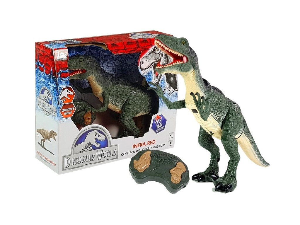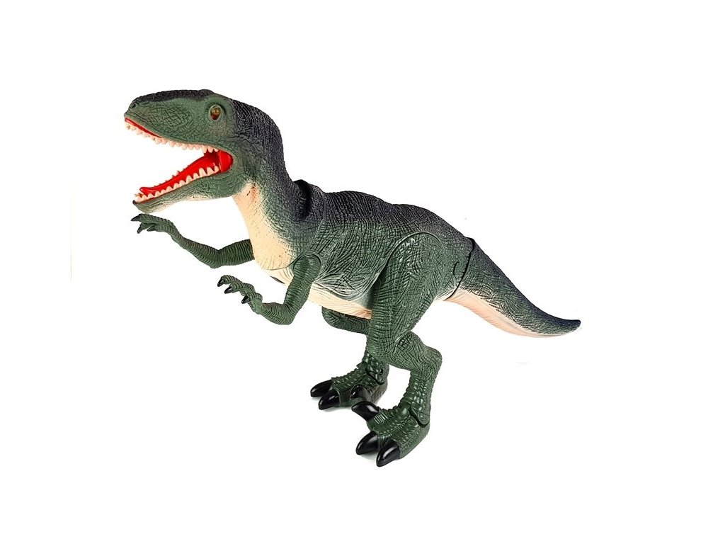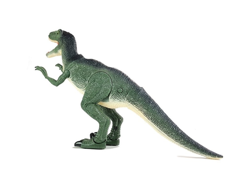 След натискане на бутона динозавърът започва да издава звуци и да върти глава. Благодарение на осветяващите ефекти очите на динозавъра светят. Динозавърът се движи при натискане на бутоните на дистанционното управление.