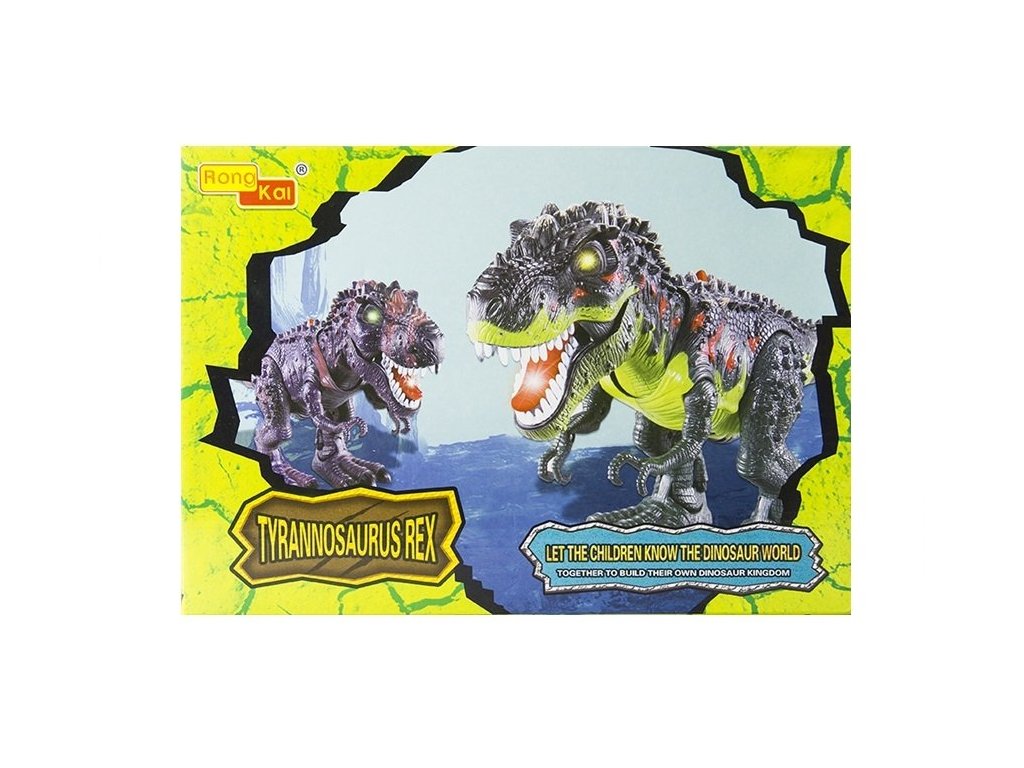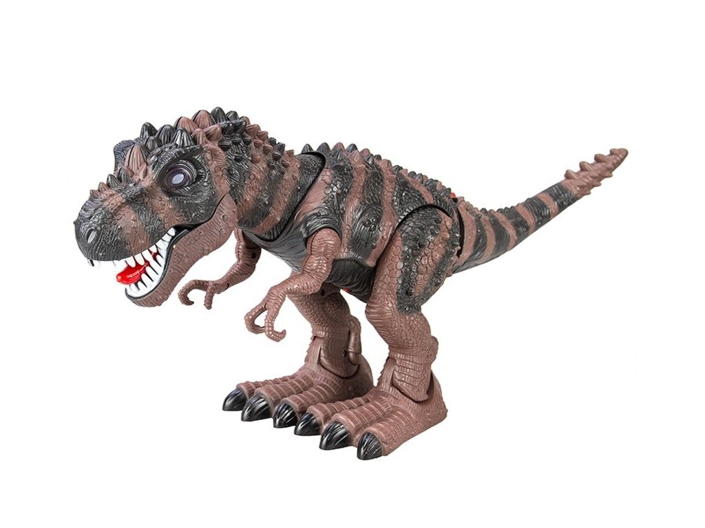 Динозавър Тиранозавър Рекс на батерии кафяв е отлична имитация на динозавър, живял преди милиони години. При натискане на бутон динозавърът може да се движи напред и назад, съпроводен от светлинни и звукови ефекти. Продуктът е опакован в кутия и е идеален подарък за деца и любители на динозаври.