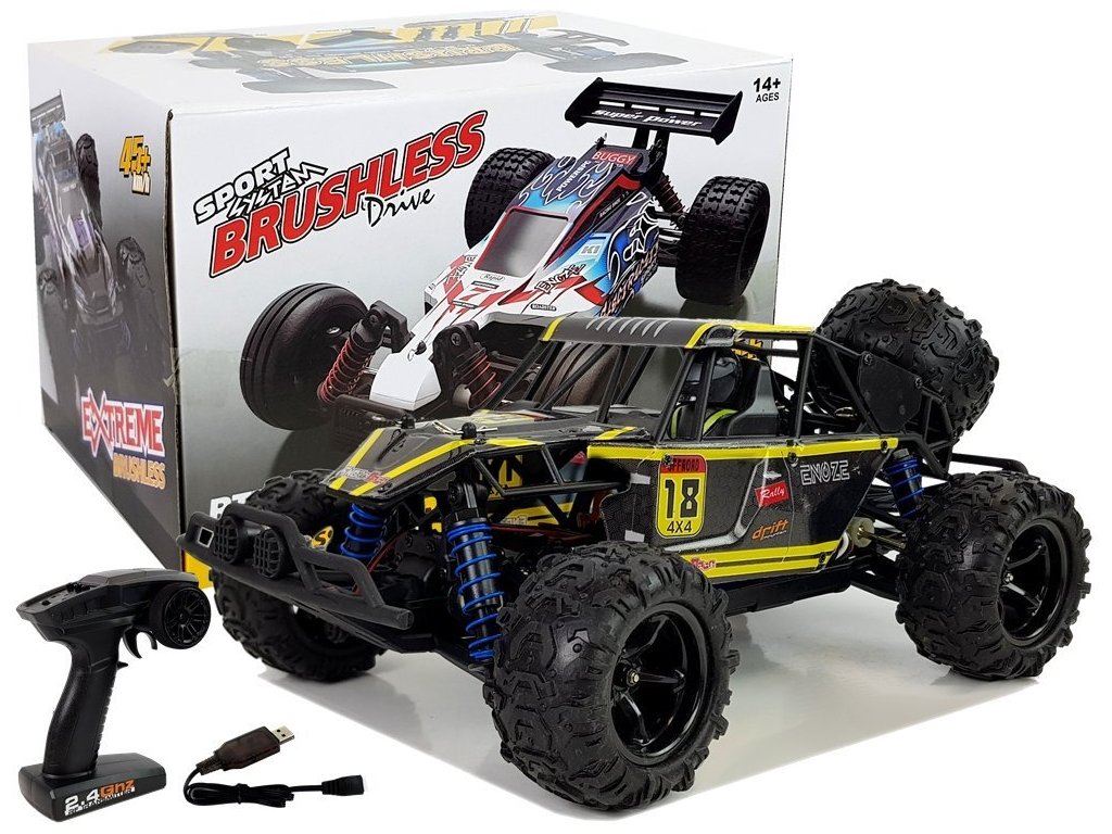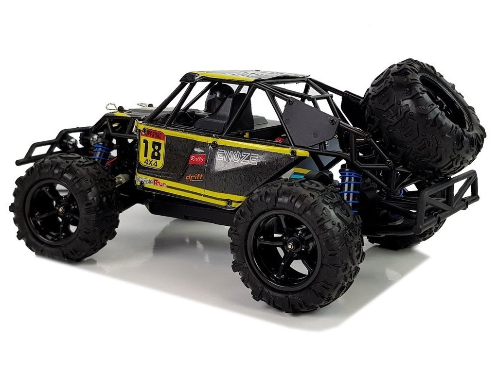 Дистанционно управление Акумулаторно бъги Enzone 45 км/ч жълто е изработено в мащаб 1:18, което го прави изключително реалистично. Комплектът включва удобен и прецизен контролер. Безжичното дистанционно управление работи на честота 2,4GHz, позволявайки ви да се състезавате в по-голяма група без взаимни смущения.